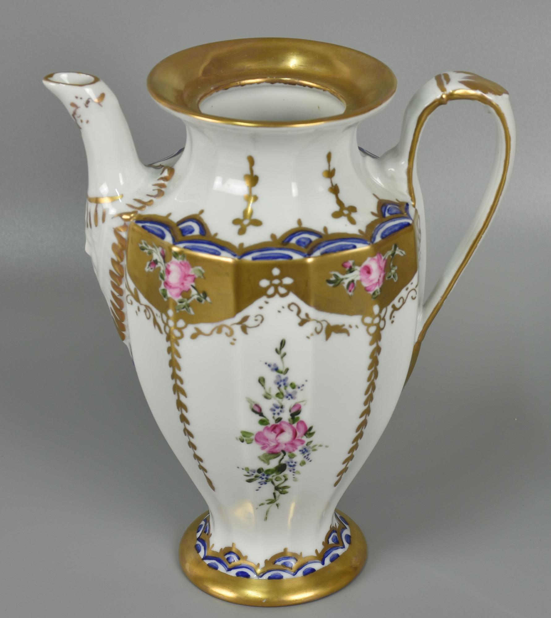 TEIERA IN PORCELLANA finemente decorata a motivi floreali h 23 cm tappo mancante