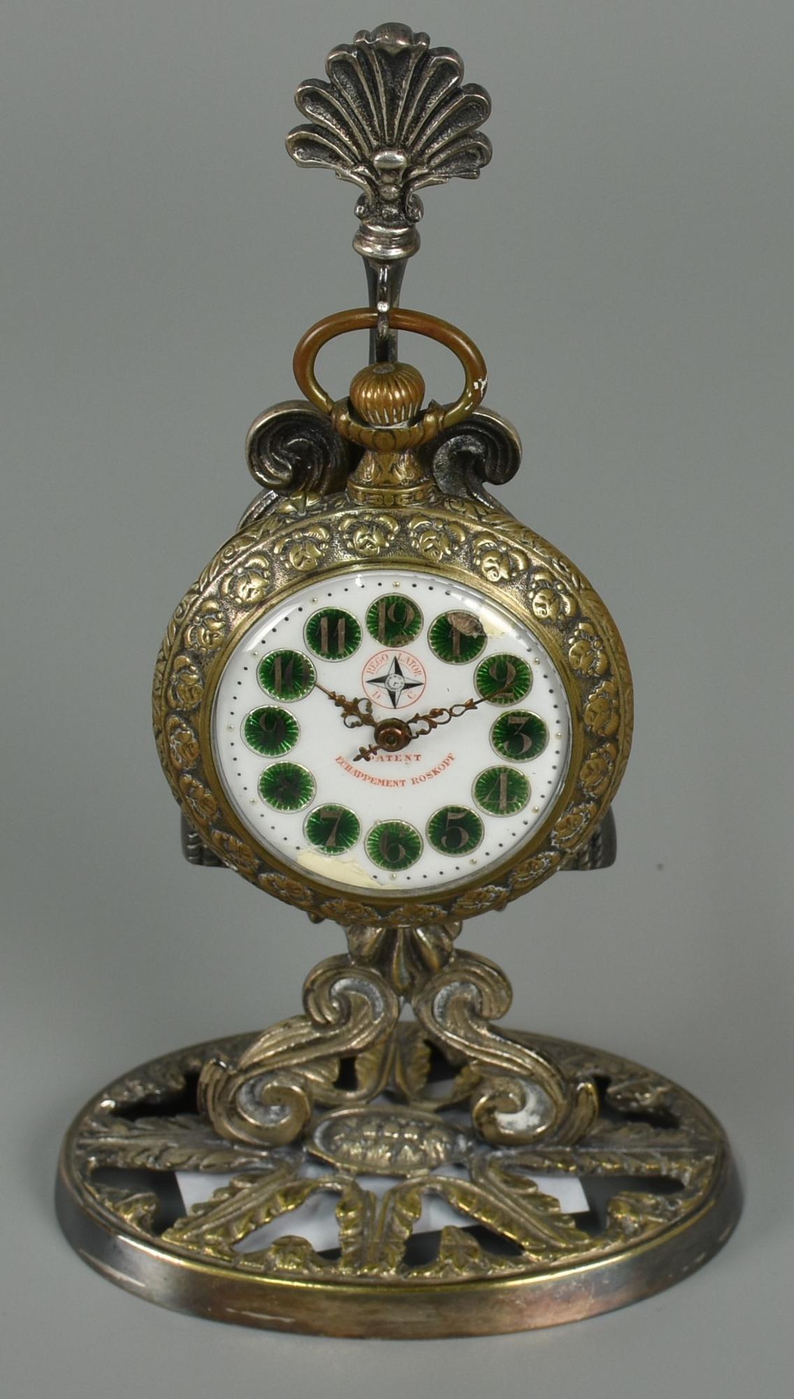 OROLOGIO DA TASCA con porta orologio, marca: Roskoff, h 18 cm Movimento da...