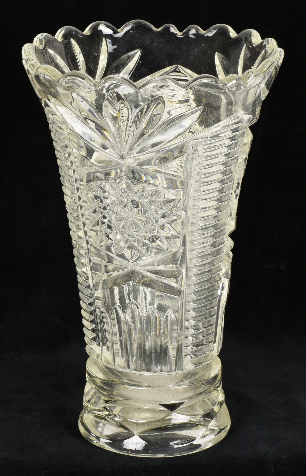 VASO PORTAFIORI in vetro, finemente decorato con temi geometrici h 20 cm