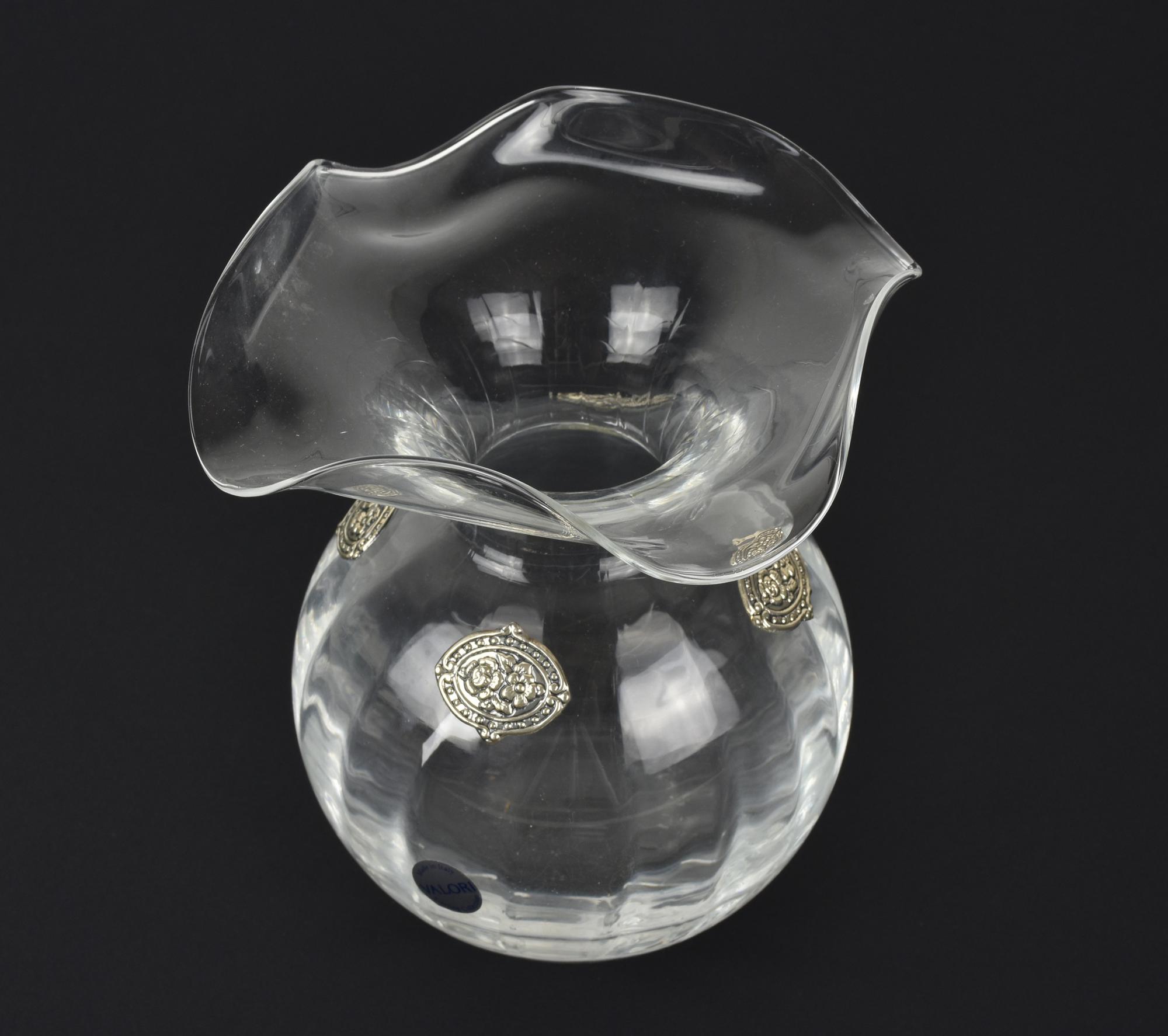 Lotto 380 | VASO IN VETRO con decorazioni in argento Sterling 925 alt. cm 18