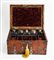 in noce con rinforzi in ferro, all'interno flaconi da toilette in cristallo con tappi in metallo argentato, completo di chiave