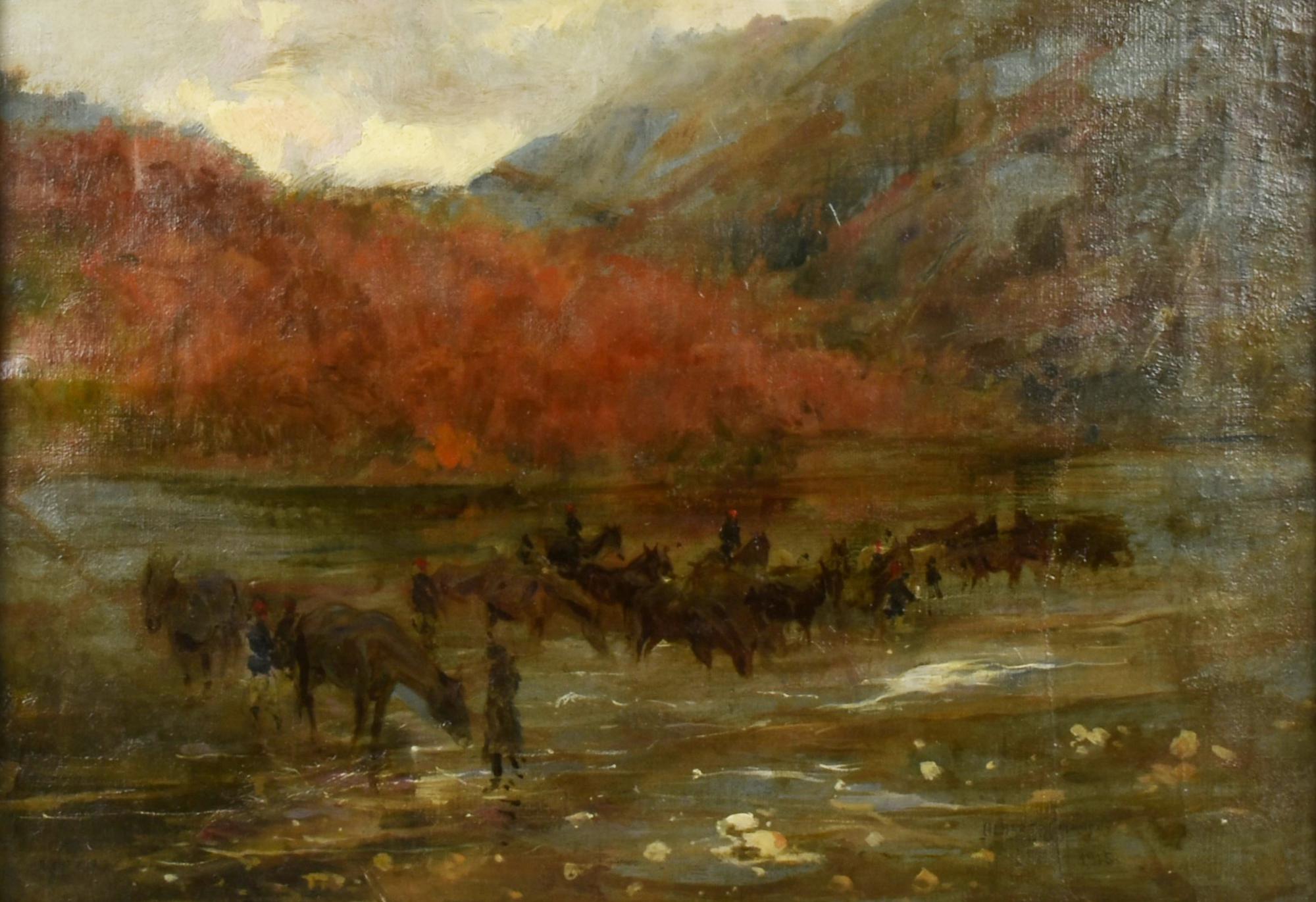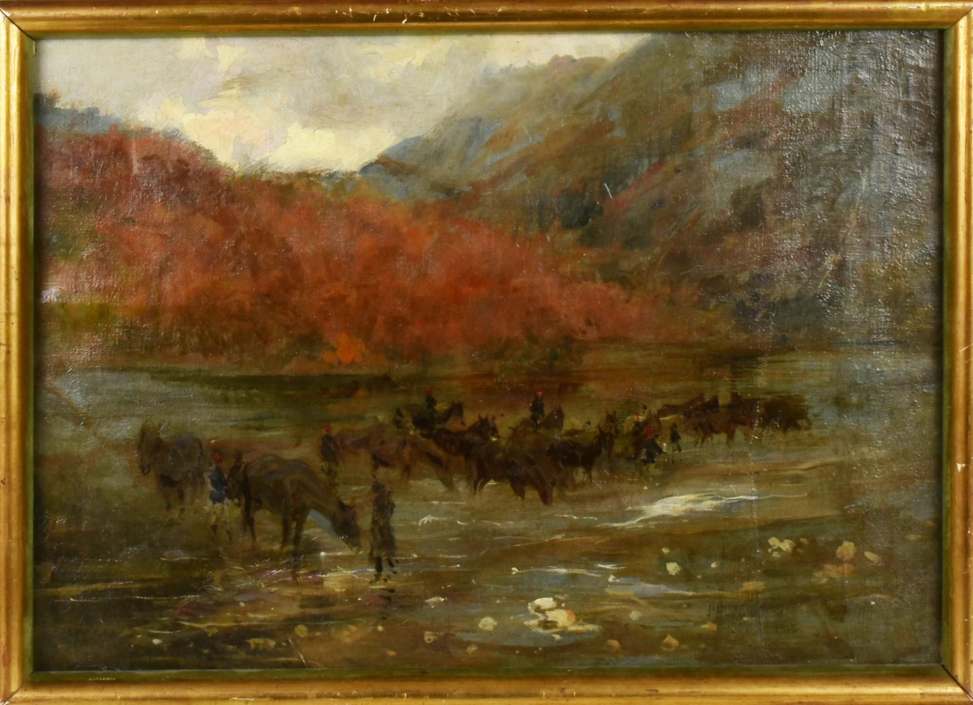 Alberto Carosi MULATTIERI olio su tela, cm 39x35 firma e data sul retro:...