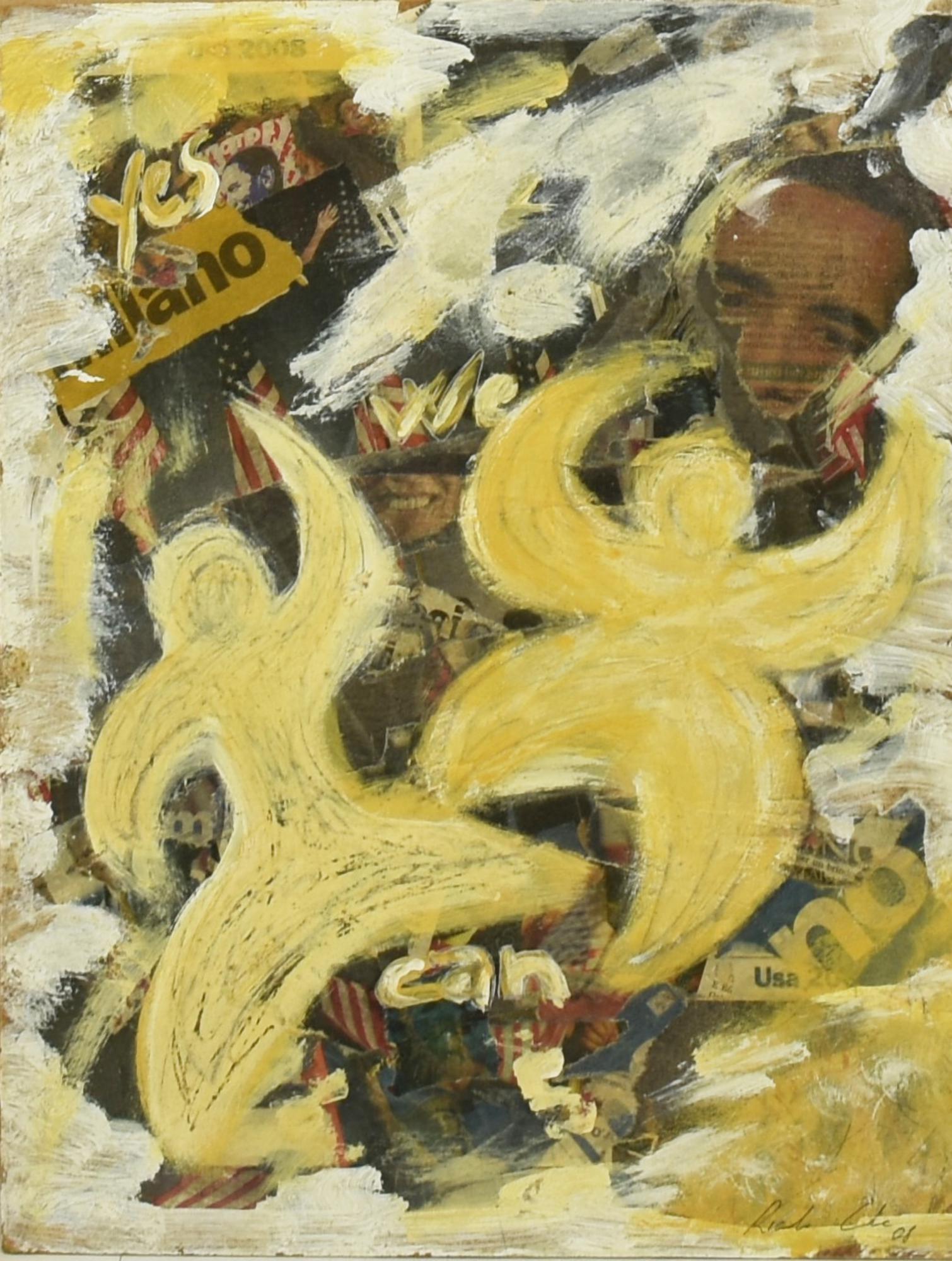 Riccardo Conte ELEZIONI 2008, OMAGGIO A BARACK OBAMA collage e tecnica mista...