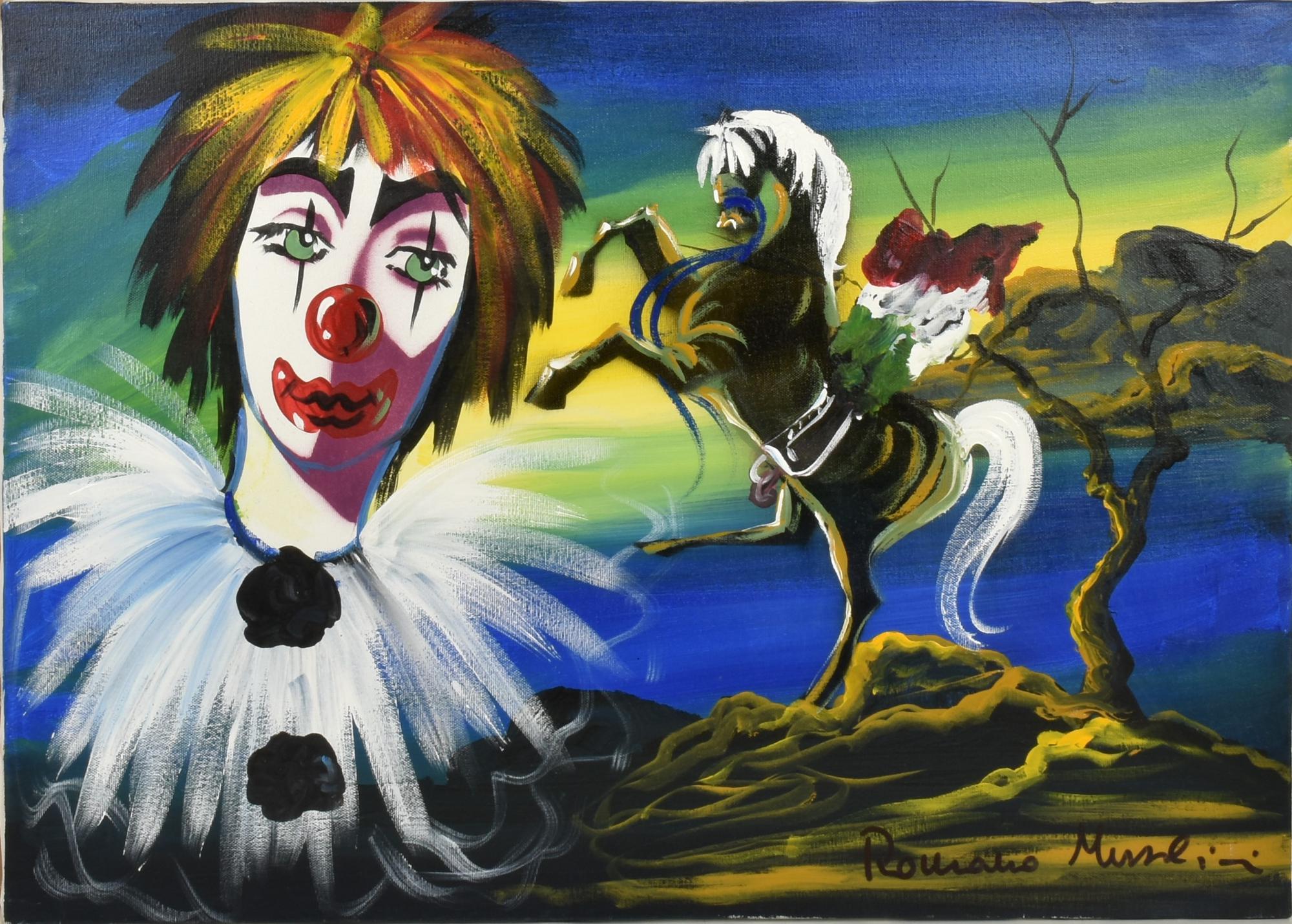 Romano Mussolini PAGLIACCIO olio su tela, cm 50x70 firma sul retro: firma