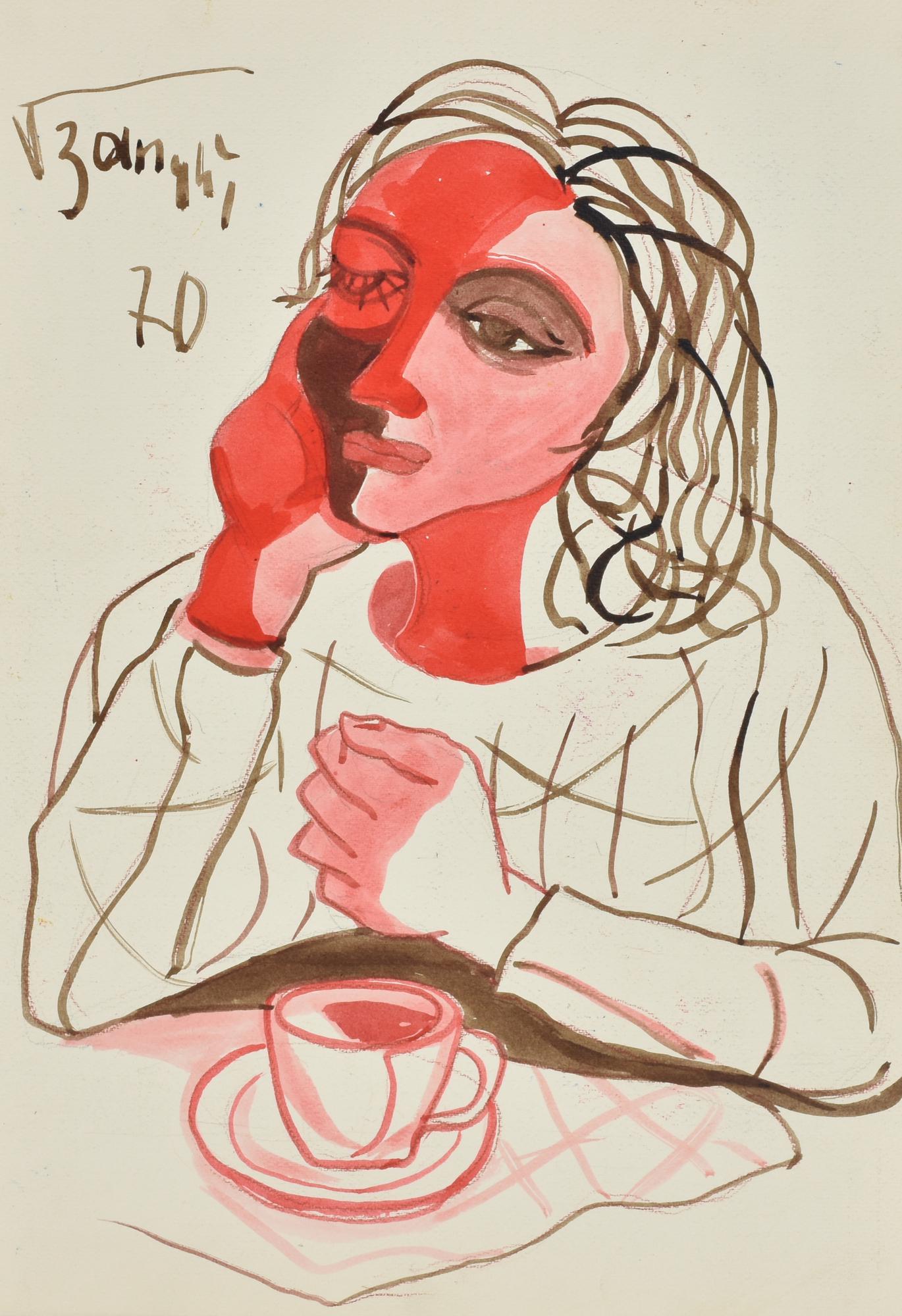 Lotto 154 | Zanghi DONNA CON TAZZA tecnica mista su carta, cm 50x35 firma e data eseguita...