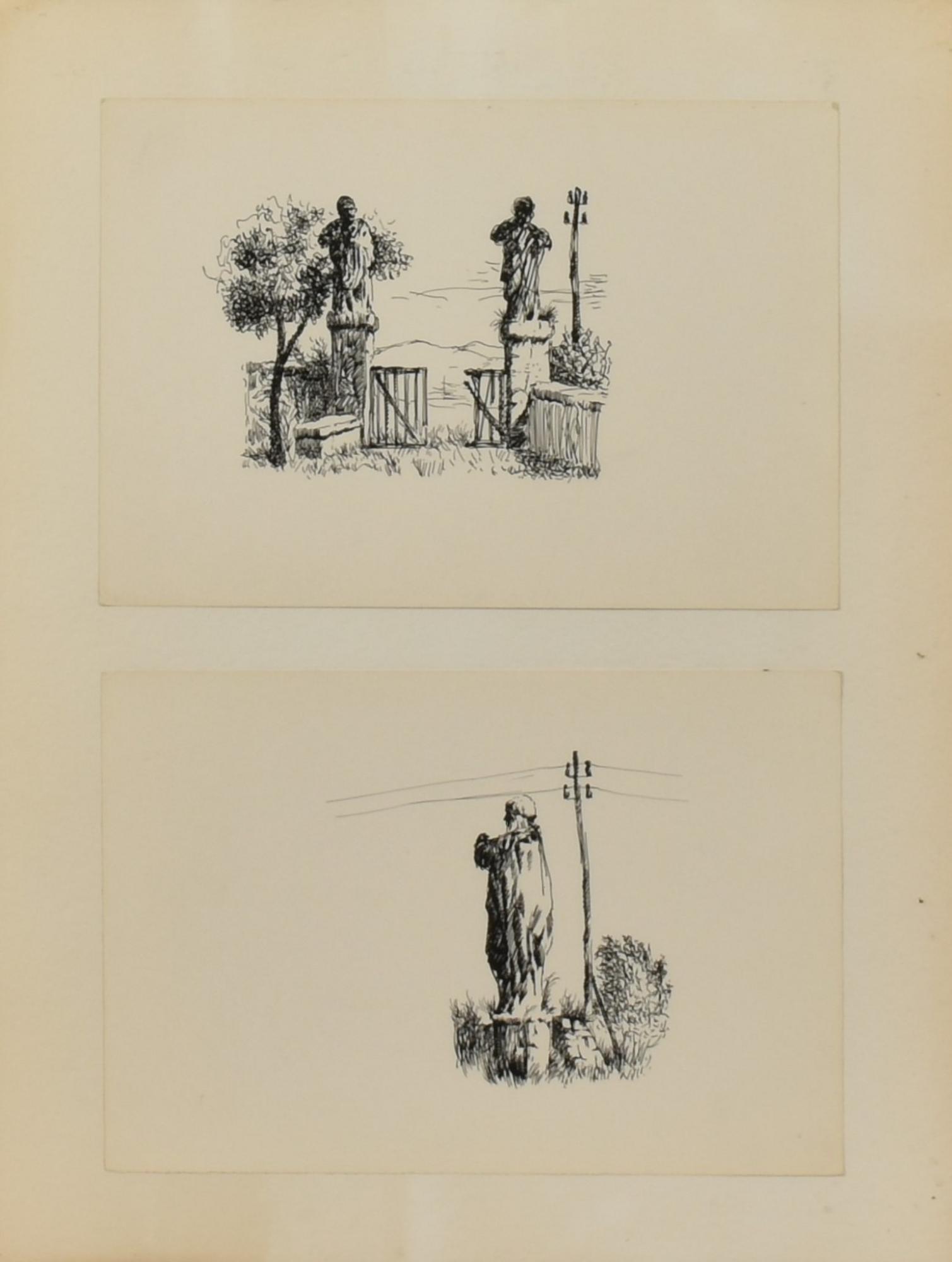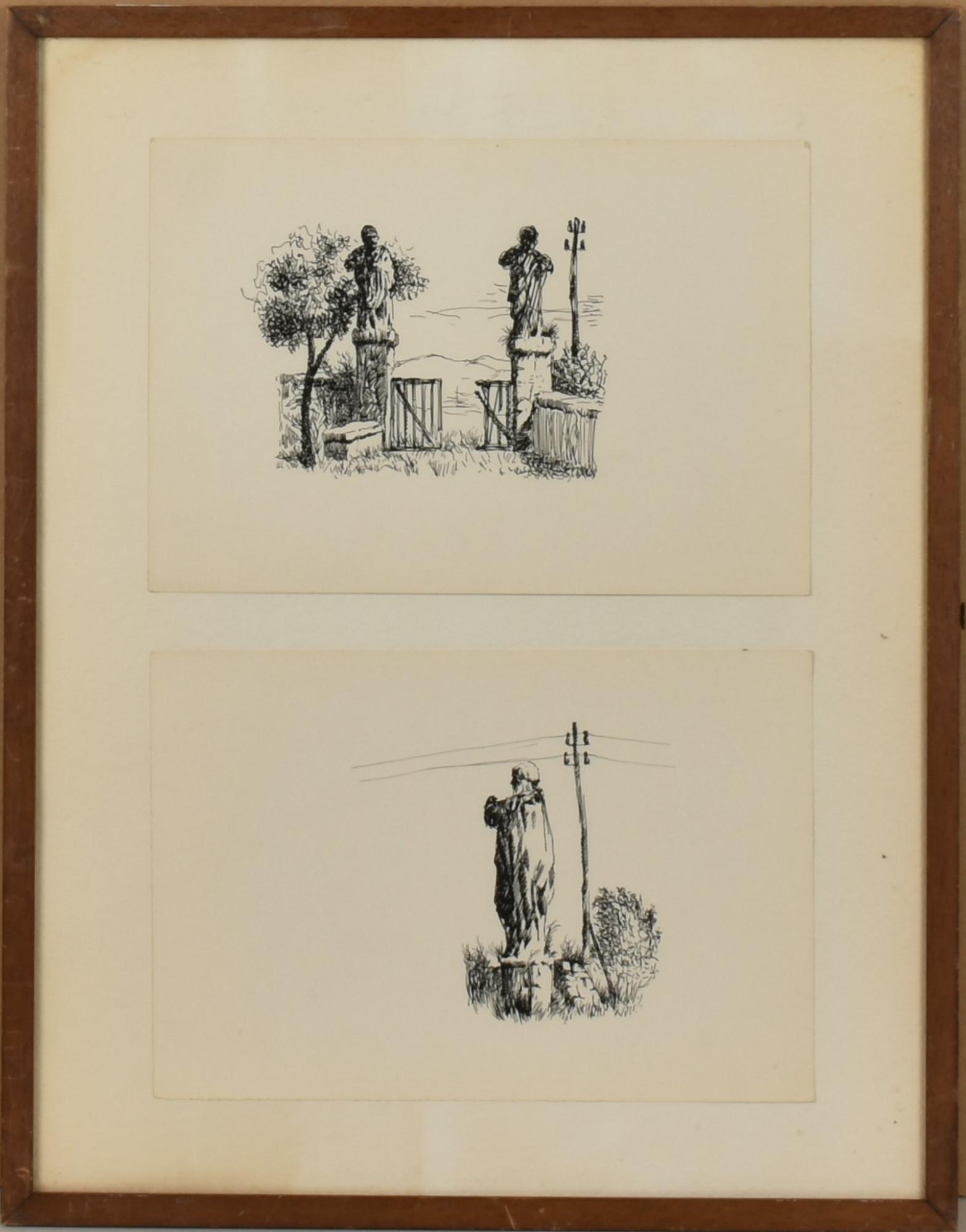 Luigi Regianini STATUE due disegni a china su carta, cm 44,5x34,5 eseguito...