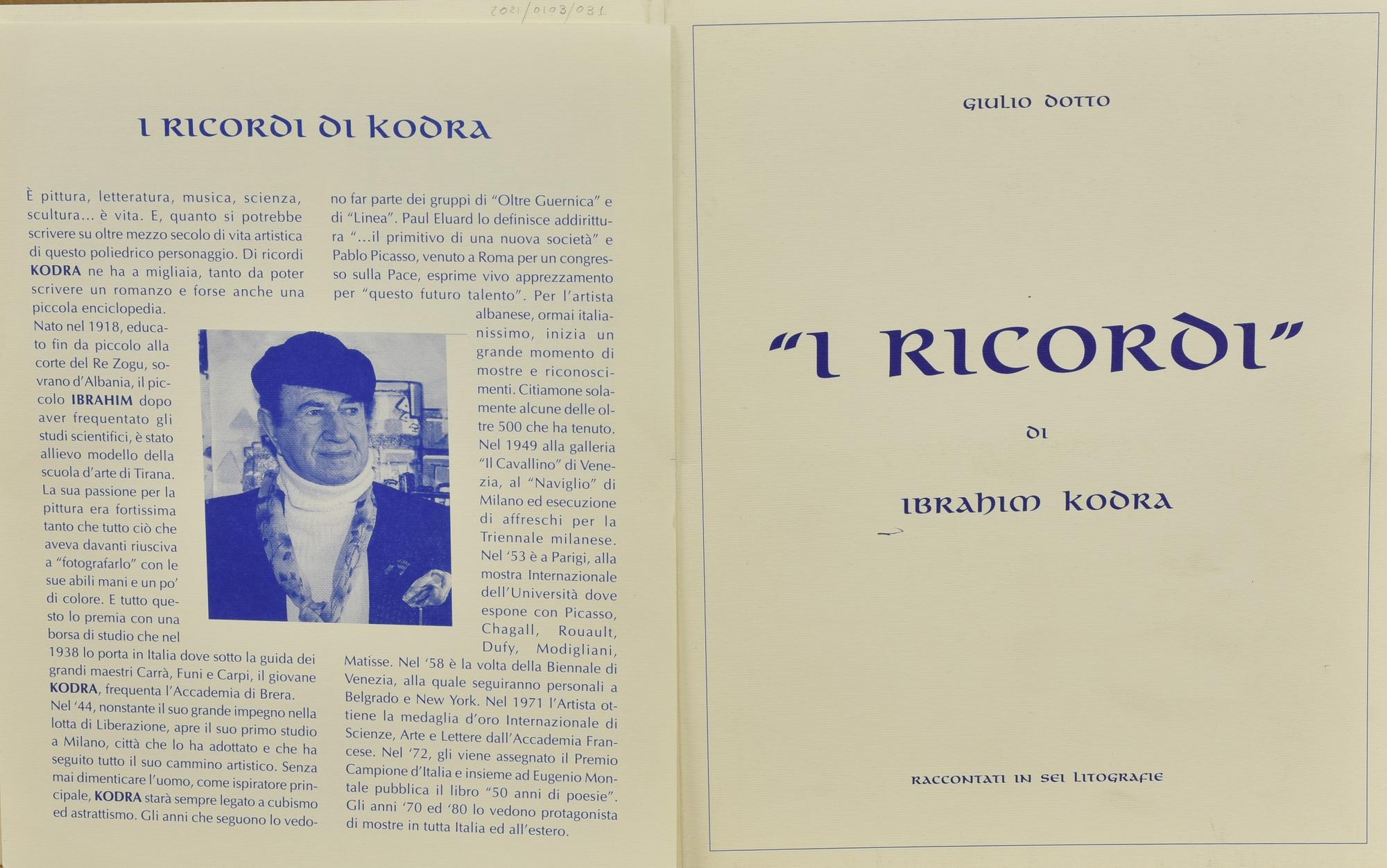 Ibrahim Kodra I RICORDI DI IBRAHIM KODRA sei litografie su carta, cm 29x24;...