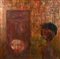 Giuseppe Banchieri BAMBINO PESCI E DARSENA AL TRAMONTO olio su tela, cm...