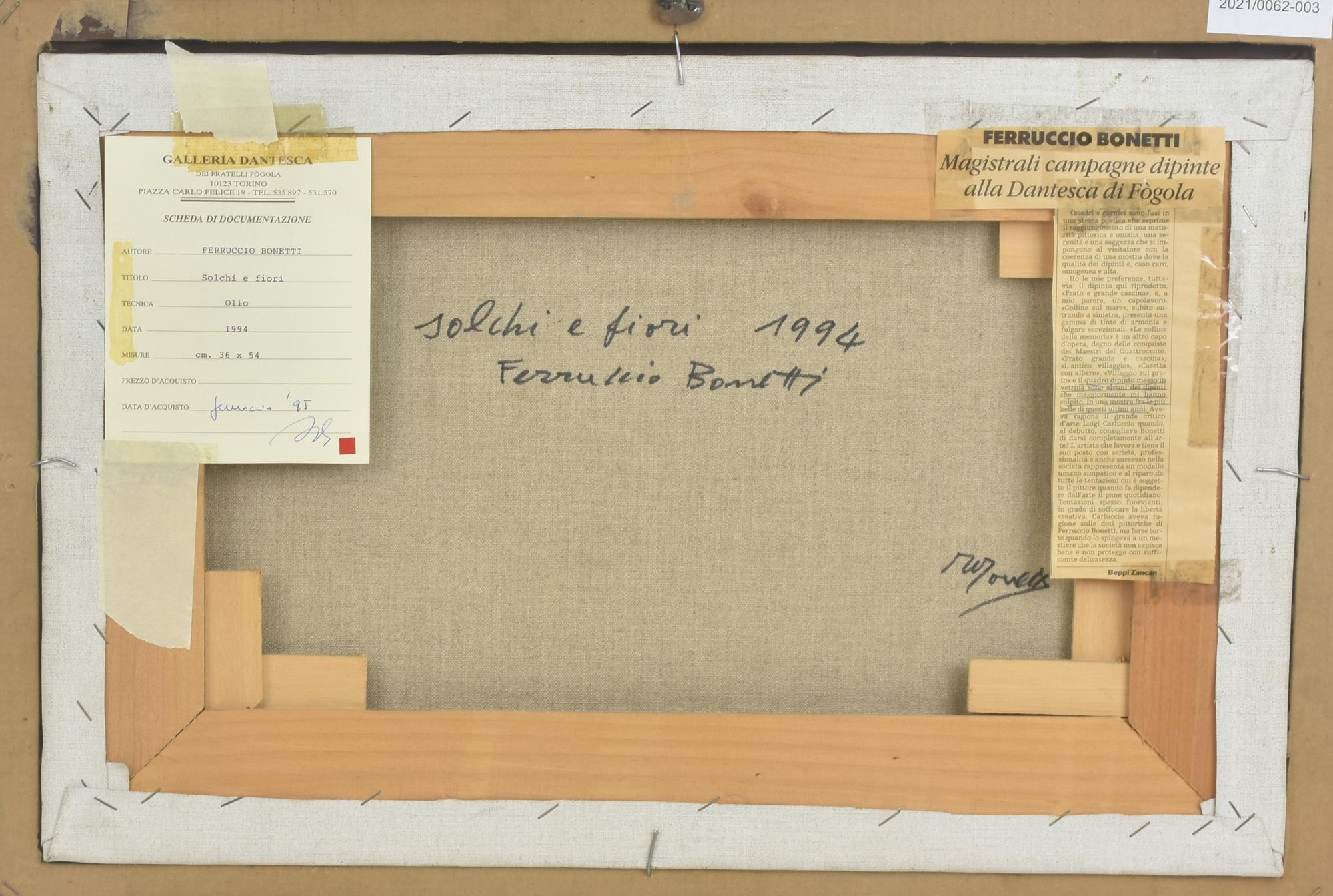 Luca Bonetti SOLCHI E FIORI olio su tela, cm 36x54 firma sul retro: firma,...