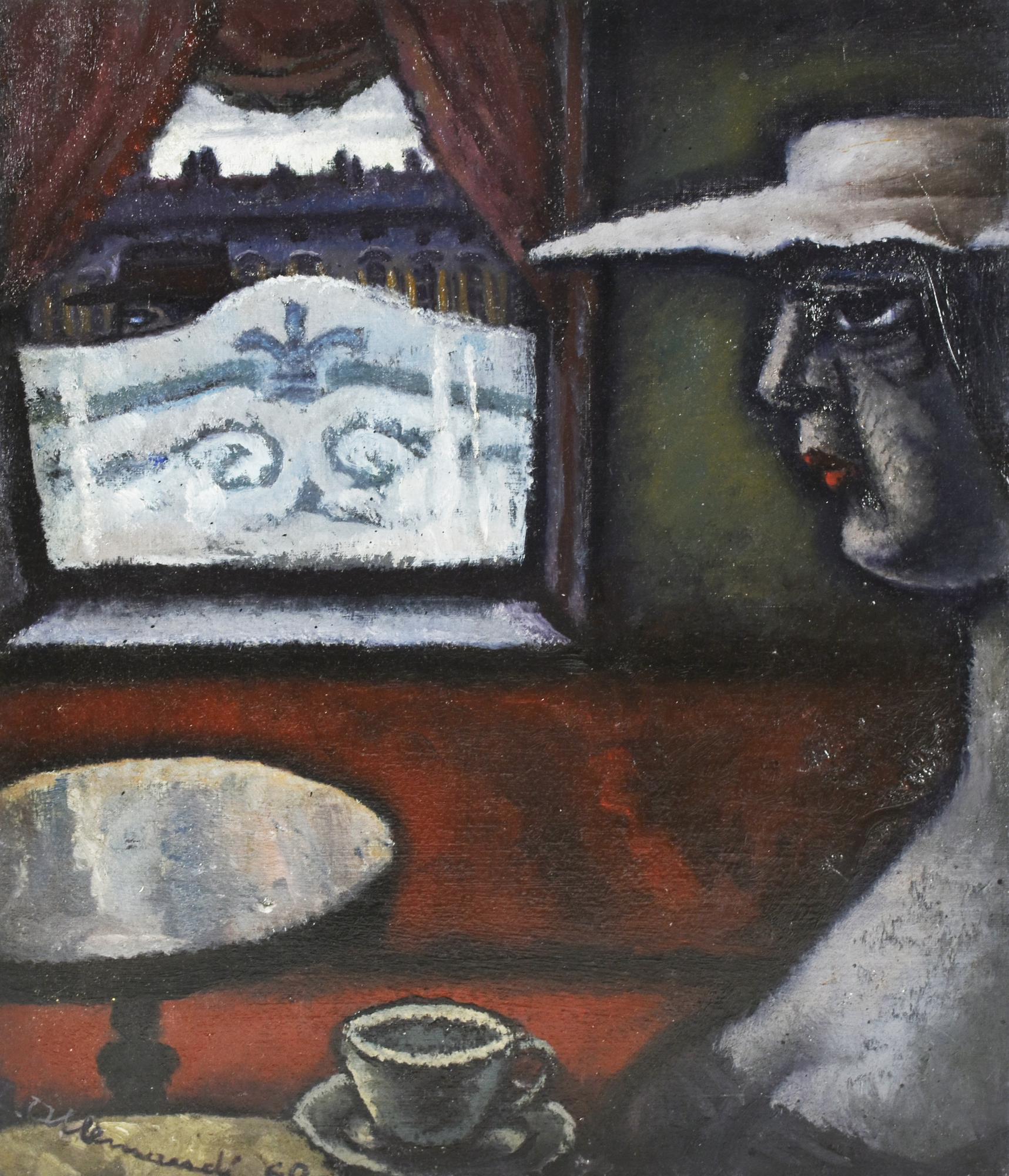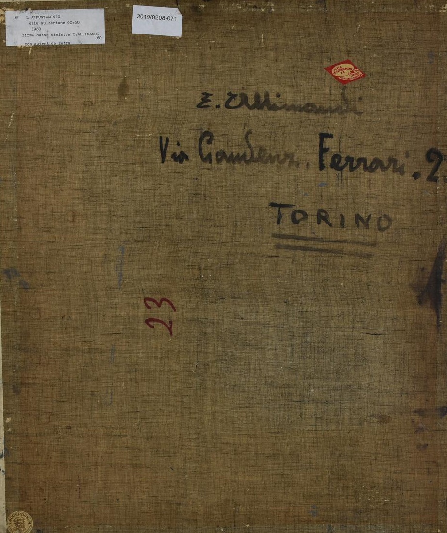 Enrico Allimandi L'APPUNTAMENTO olio su cartone telato, cm 60x50 firma e data...