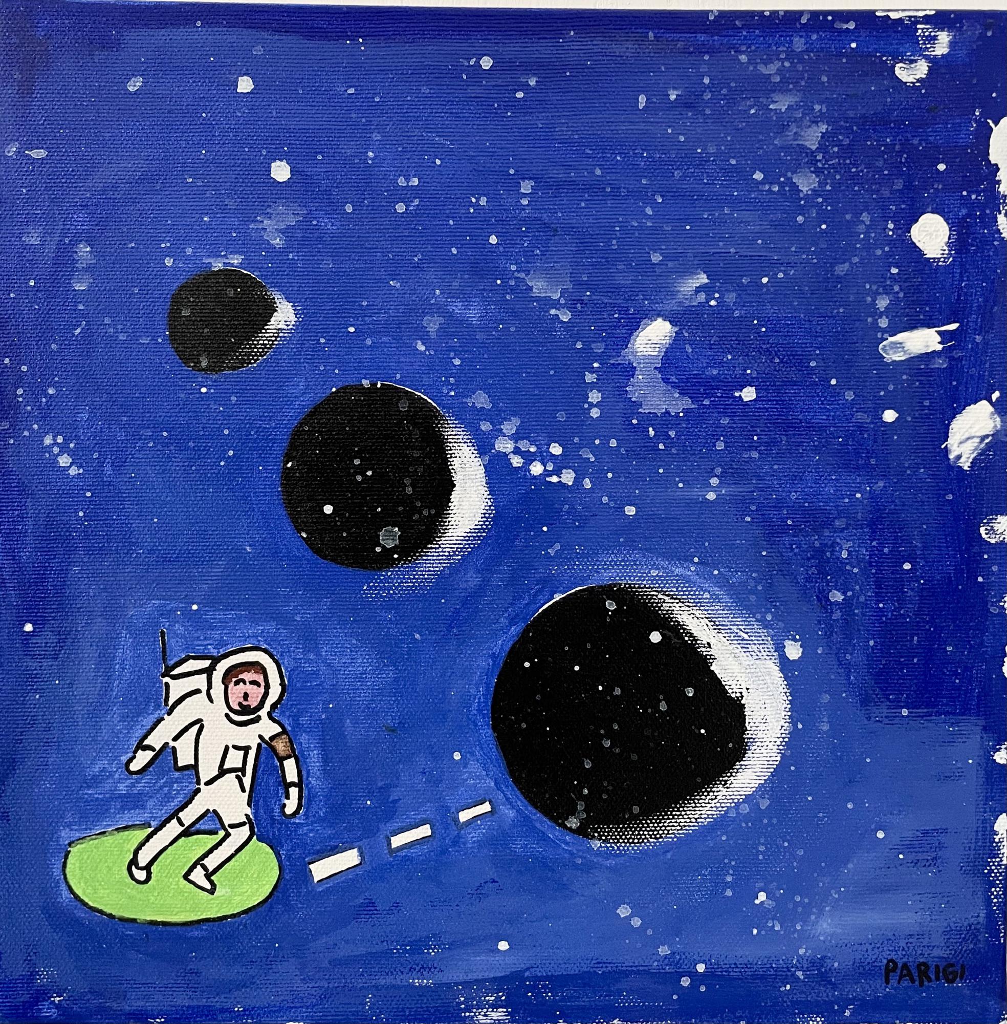 Claudio Parigi VIAGGIO NEL VORTICE SPAZIALE acrilico su tela, cm 30x30 firma...