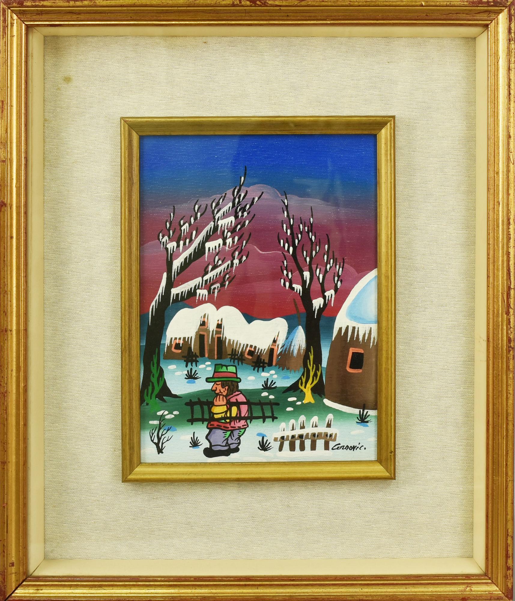 Cordovic PAESAGGIO INVERNALE acrilico su tela, cm 24x18 firma