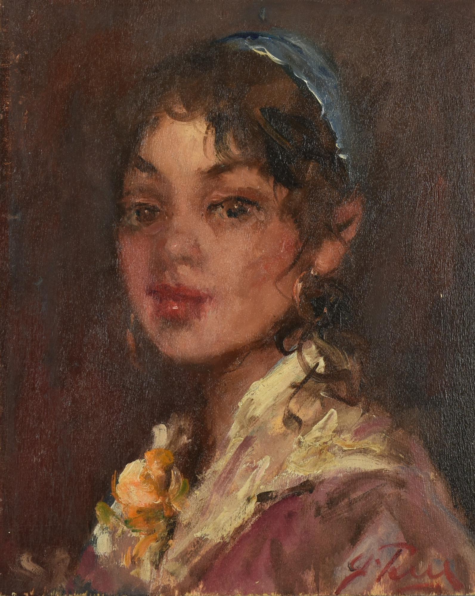 Giovanni Pace VOLTO FEMMINILE olio su tavola, cm 30x24 firma sul retro: firma