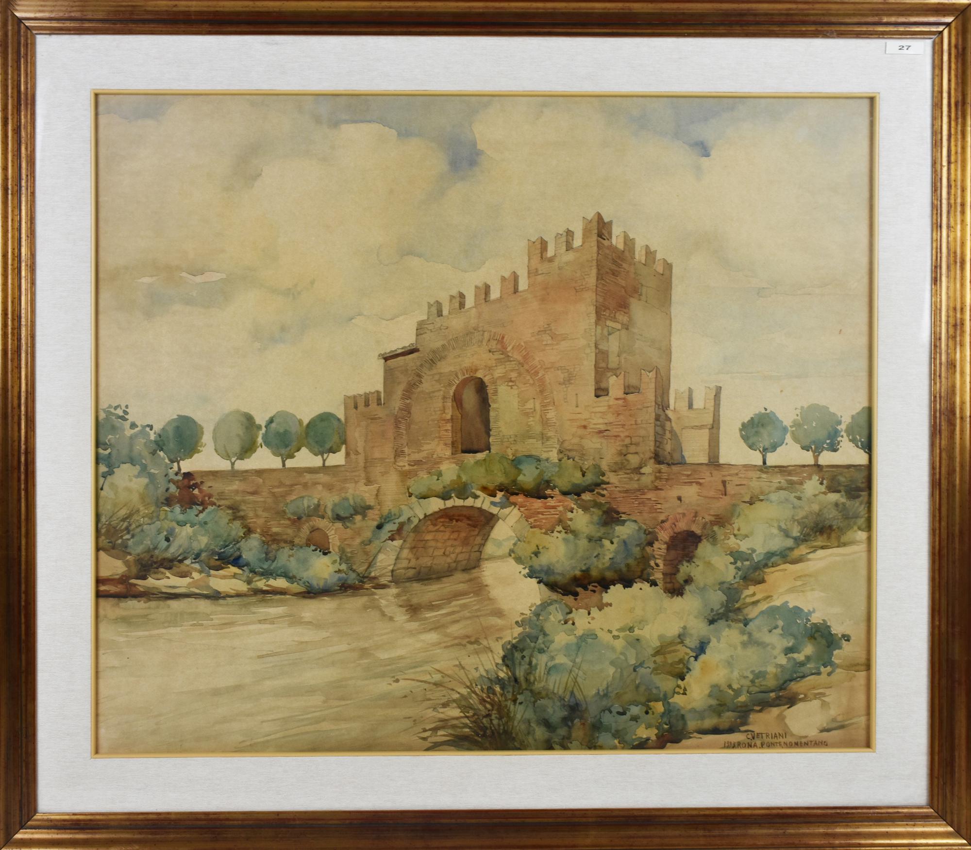 C. Vetriani PONTE NOMENTANO ROMA tecnica mista su carta, cm 68x80 firma,...
