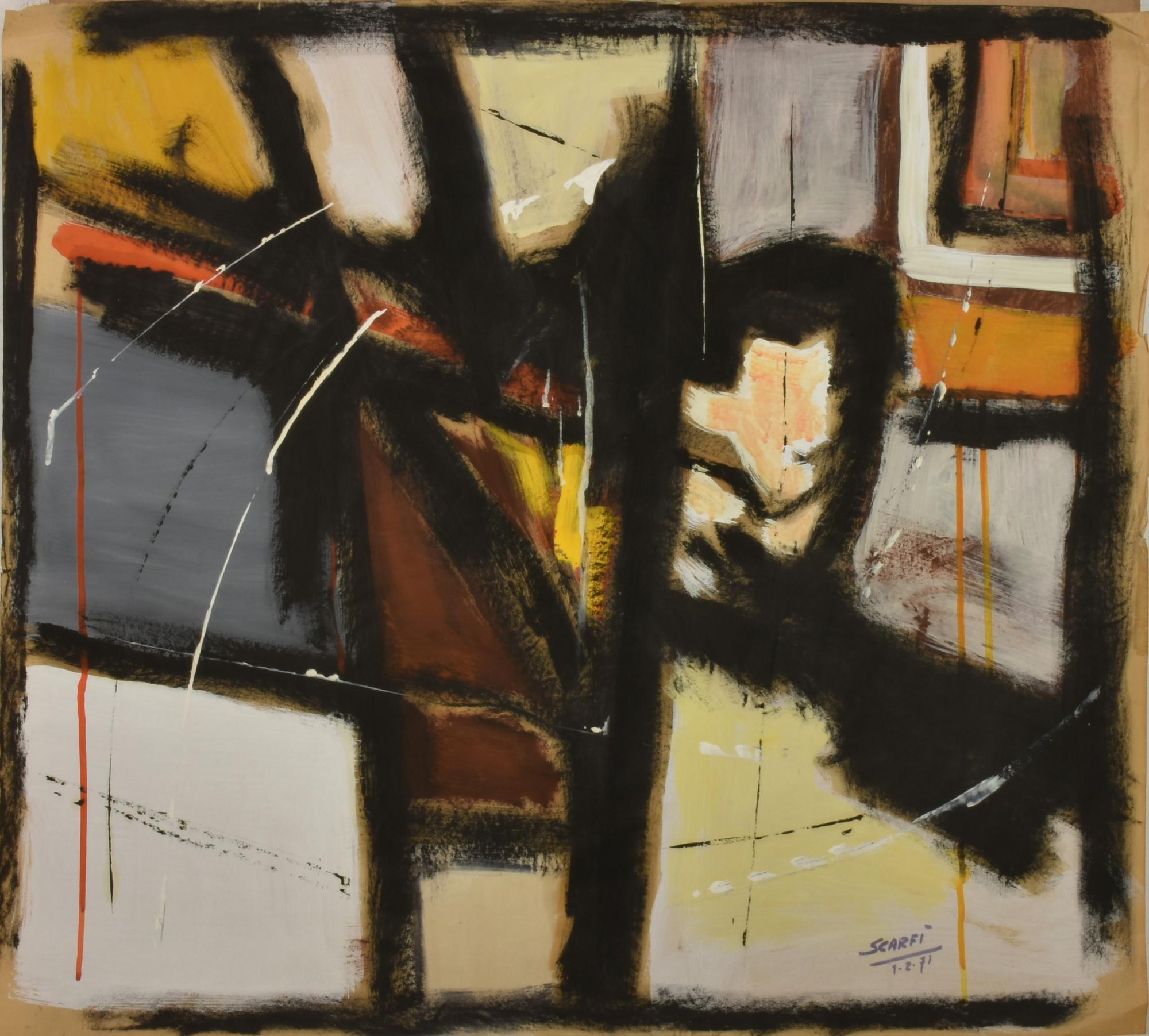 Attilio Scarfi SENZA TITOLO tecnica mista su carta, cm 65x73 firma e data sul...