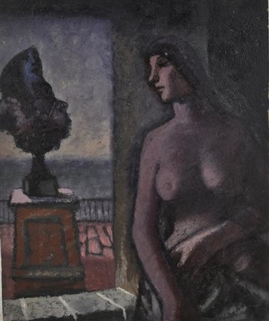 Enrico Allimandi RAGAZZA VERSO IL BALCONE olio su faesite, cm 46x38 eseguito...