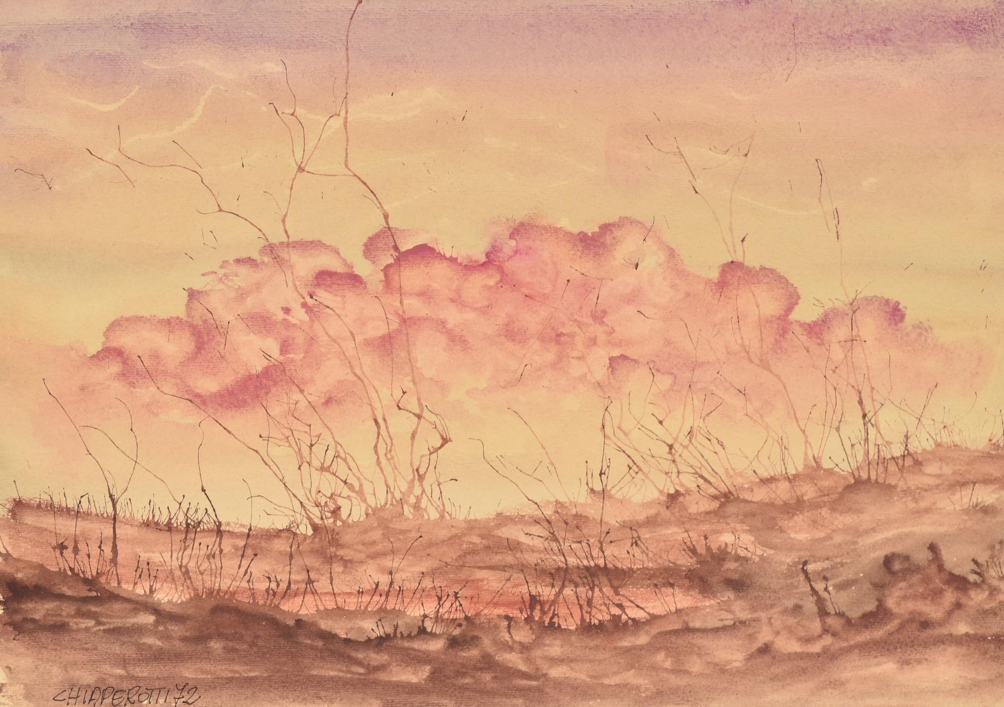 Ugo Chiaperotti CIELO ROSSO tecnica mista su carta, cm 25x35 firma e data sul...