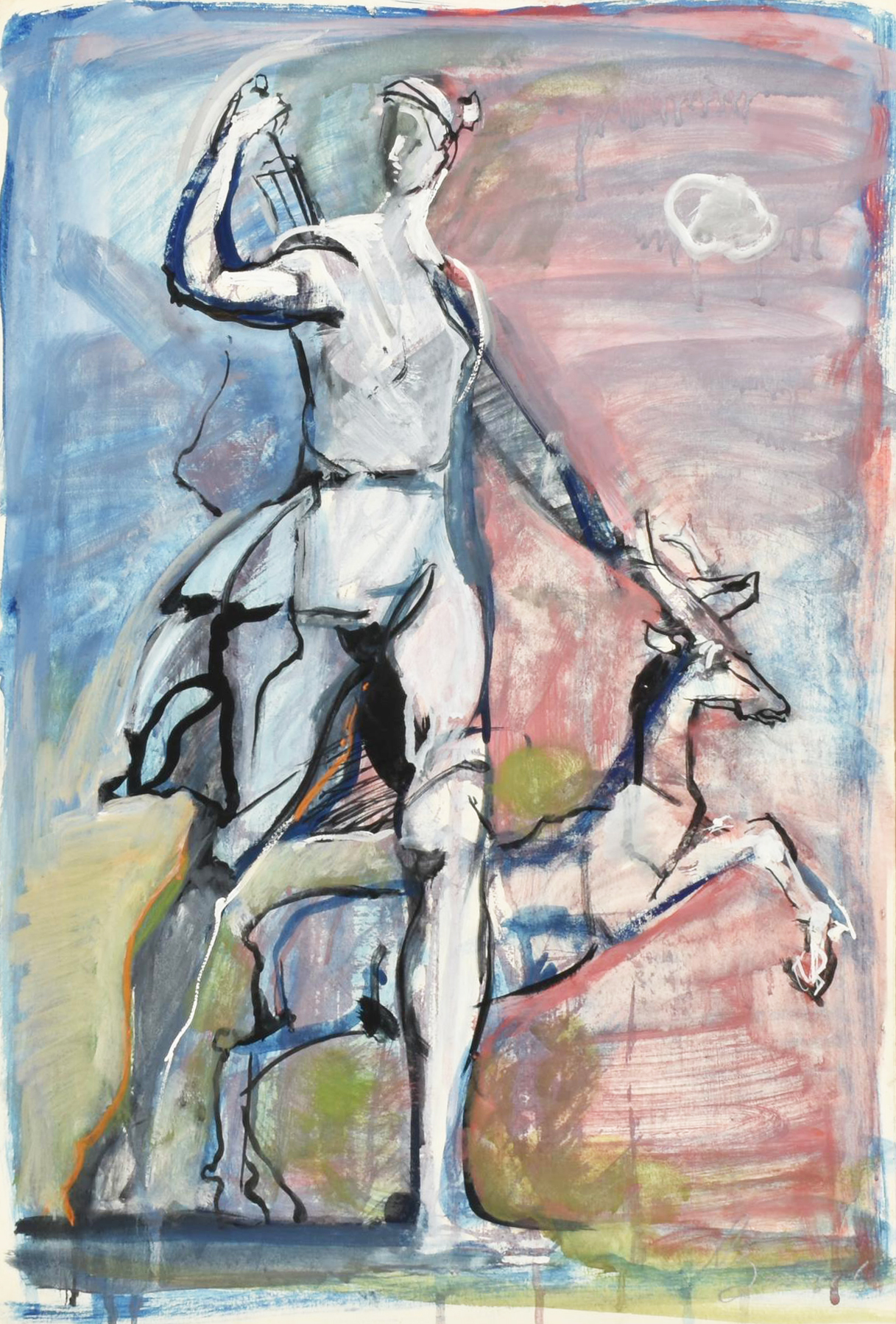 Alexandre P. Zaitsev DIANA CACCIATRICE tempera su carta, cm 61x41 firma sul...
