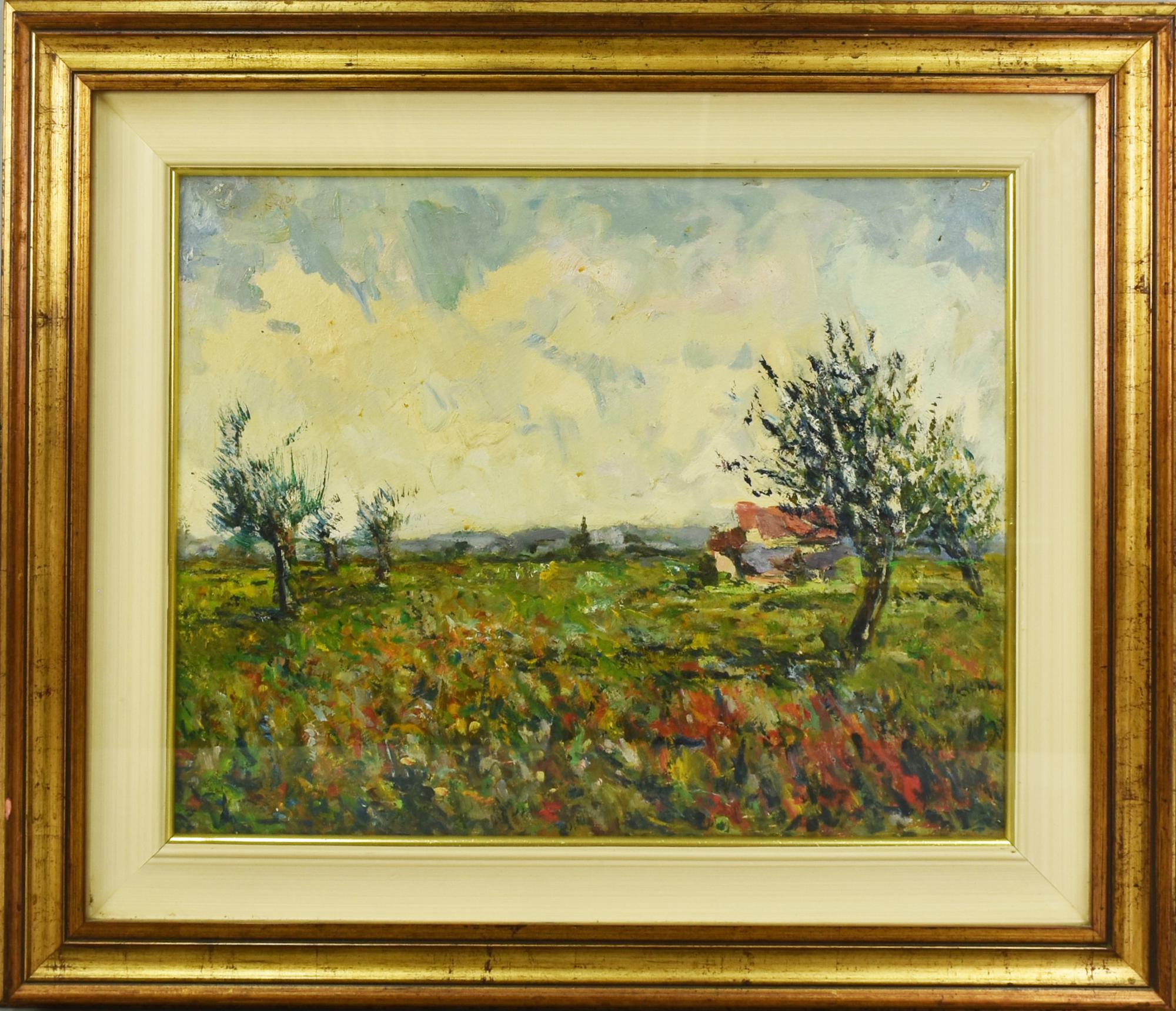 Francesco Cella PAESAGGIO olio su tavola, cm 50x40 sul retro: firma eseguito...