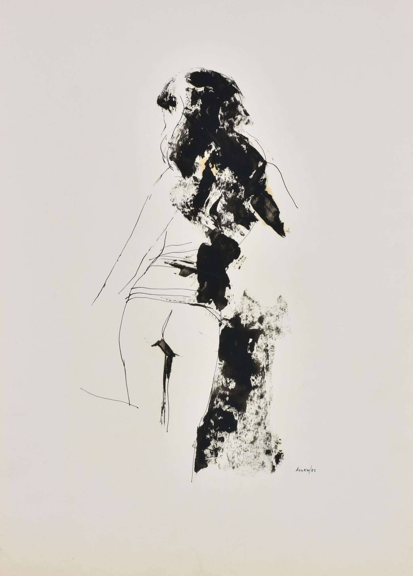 De Naro FIGURA inchiostro su carta, cm 50x35 firma e data sul retro: titolo e...