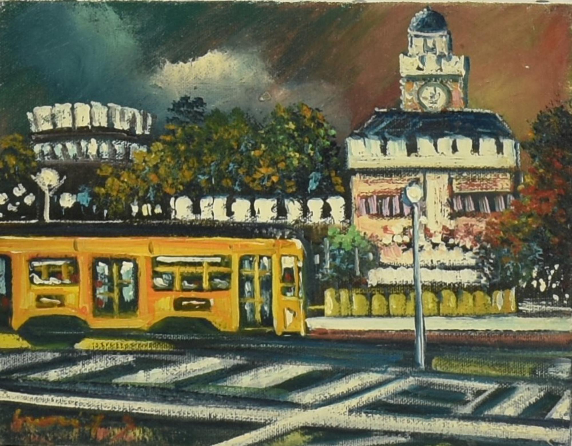 Francesco Grassi MILANO, IL CASTELLO olio su tela, cm 18x24 firma sul retro:...