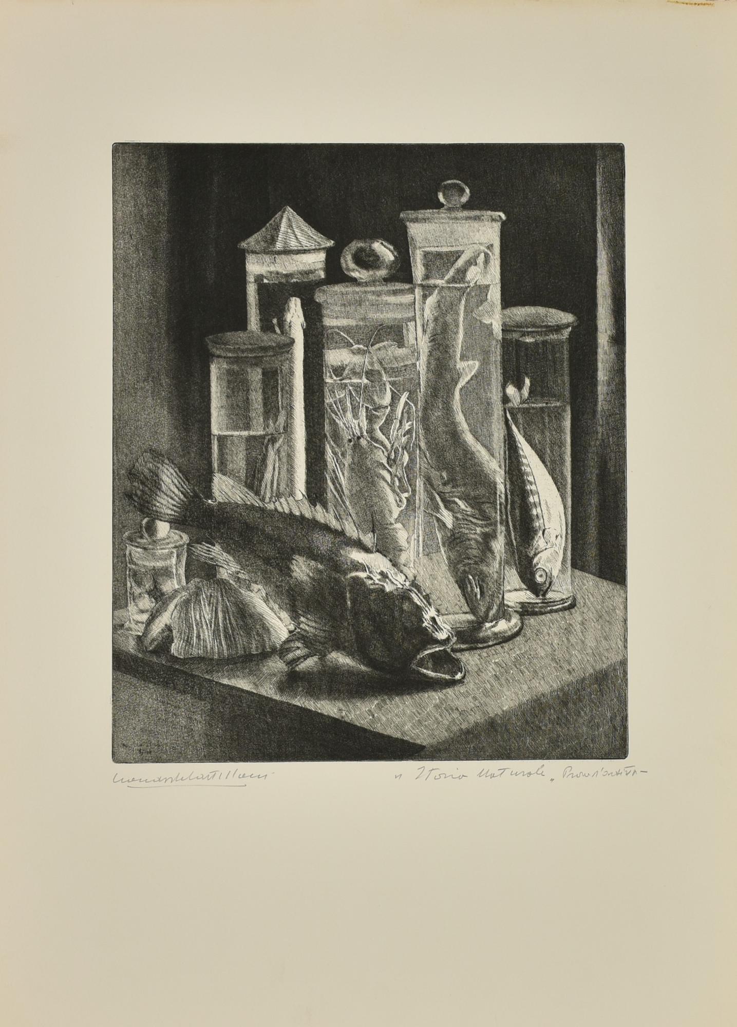 Leonardo Castellani STORIA NATURALE acquaforte acquatinta, cm 40,5x33,5, su...