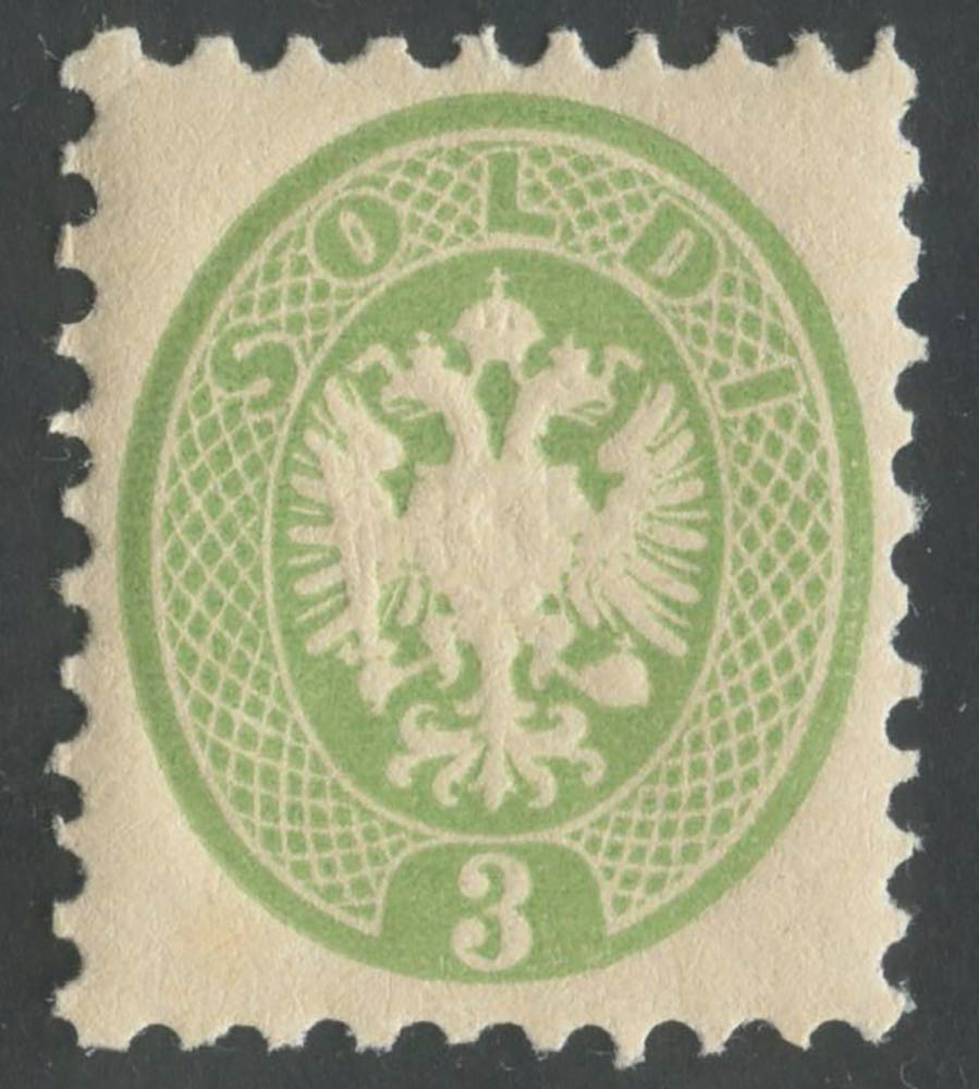 Lotto 52 | 1864, 3s. N.42 verde nuovo con gomma Integra, molto fresco e dentellatura...