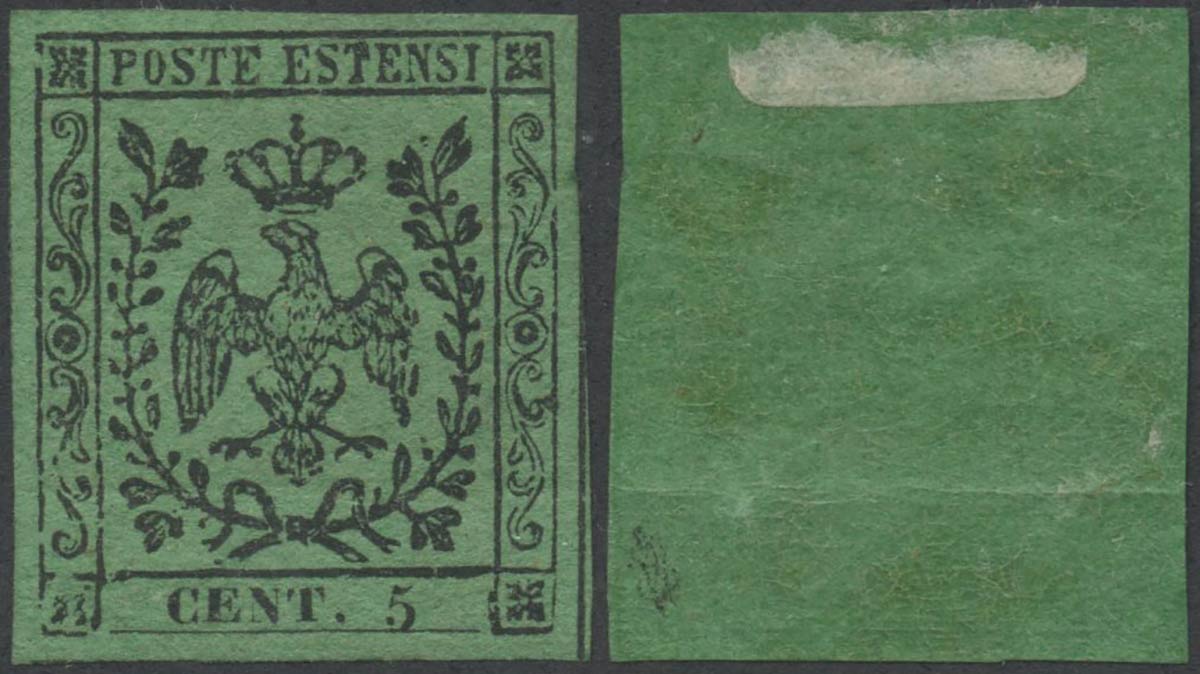 1852, 5c. N.1 Verde nuovo con Gomma, linguellato. Al retro evidente grinza di...