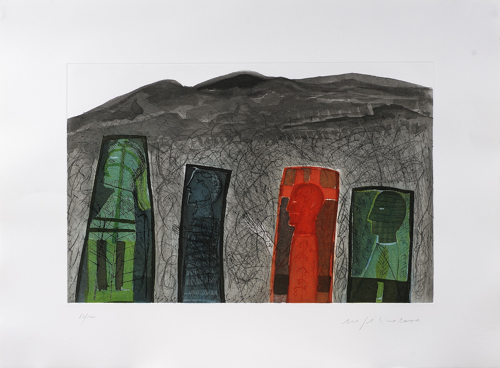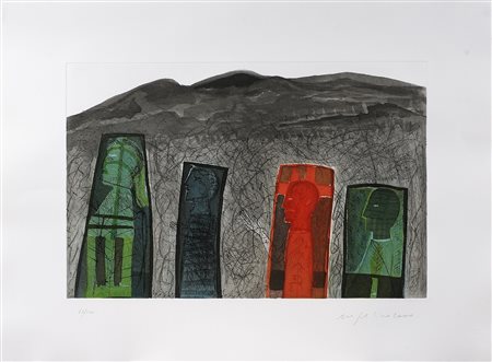 PALADINO MIIMMO (n. 1948) Sguardo a destra. 2000. Serigrafia. Cm 81,00 x 61,00. Tir. 82/100 , data e firma in basso a matita. Misure lastra:39x58 cm.