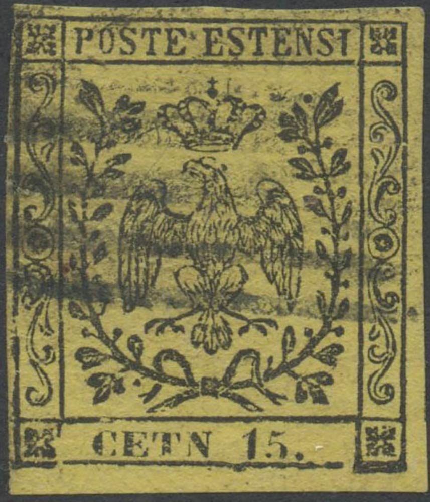 1852, 15c. N.3 Giallo con la 'T' e la 'N' invertite 'CETN' (N.3d). (A) (E. Diena) (Cat.1.650)