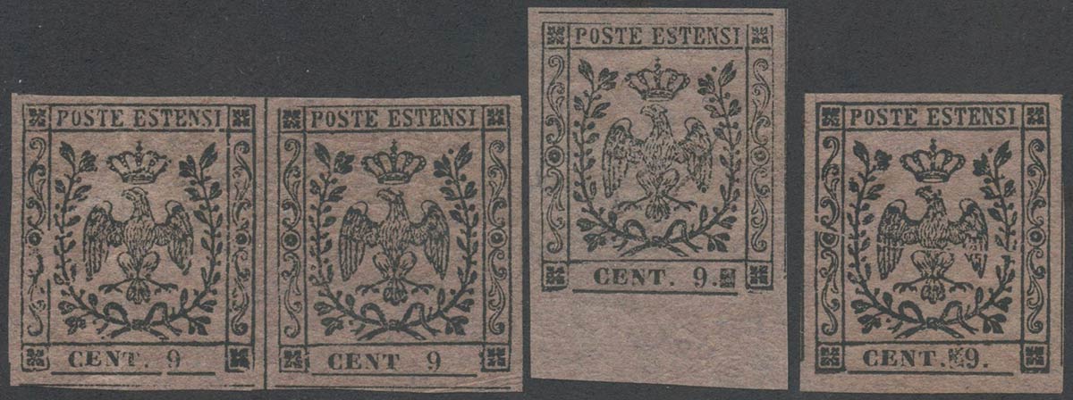 Segnatasse per giornali, quattro interessanti varietà tipografiche sul 9c....