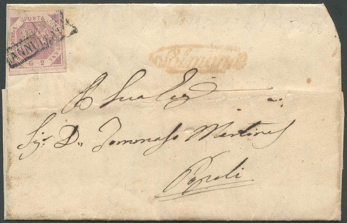 Lotto 159 | Lettera da Sulmona a Bagoli del 14 Gen 1858 (primo mese d'uso) affrancata con...