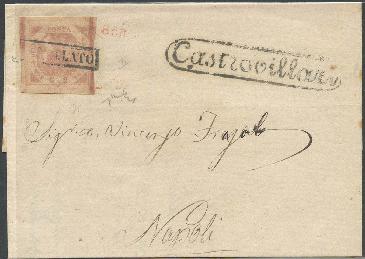 Lotto 161 | Lettera da Castrovillari (3pt.) per Napoli affrancata con un 2gr II Tav. N.6b...