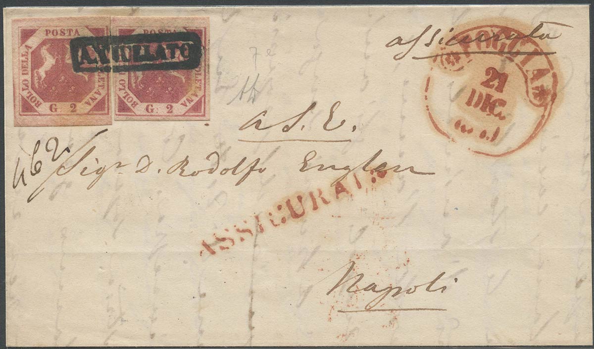 Lotto 165 | Lettera da Foggia per Napoli affrncata con due 2gr. N.7e Carminio Vivo. (A)...
