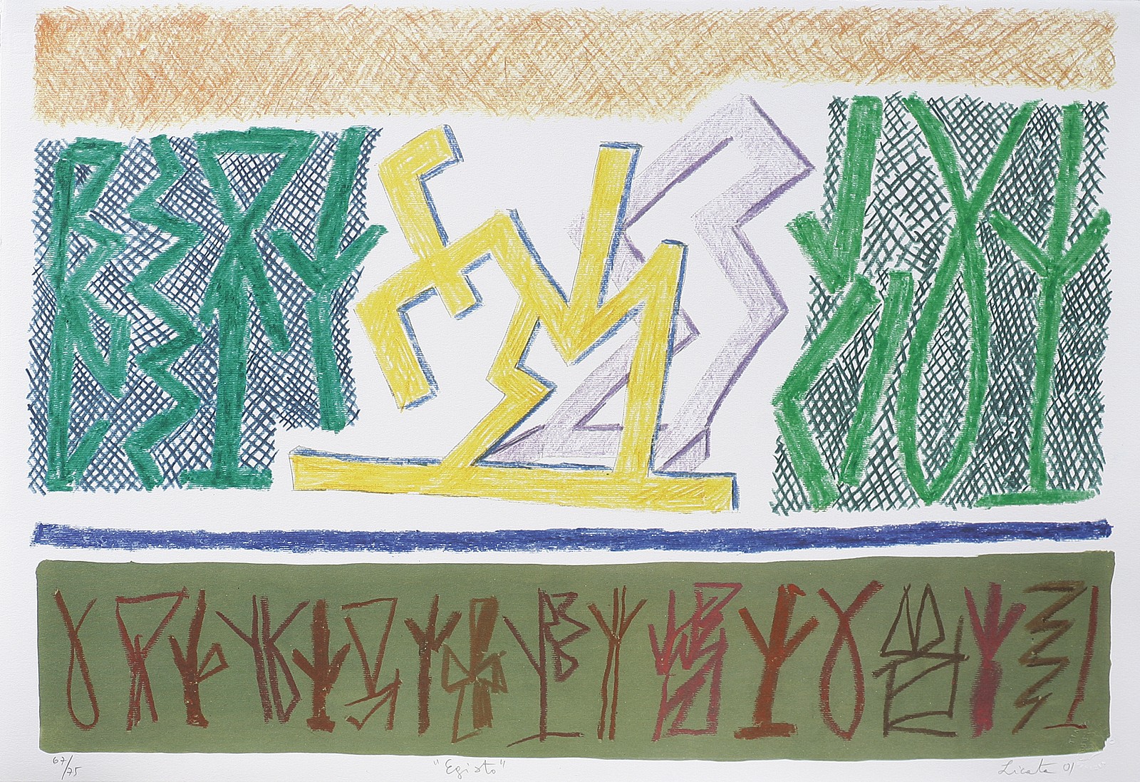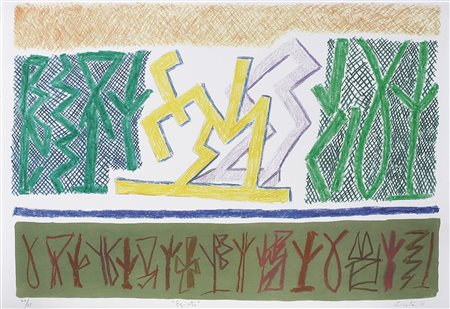 LICATA RICCARDO (n. 1929) Egisto. 2001. Serigrafia. Cm 50,00 x 35,00. Tir. 67/75, titolo, firma e data in basso a matita. Timbro a secco Tintoretto, Venezia in basso a destra.