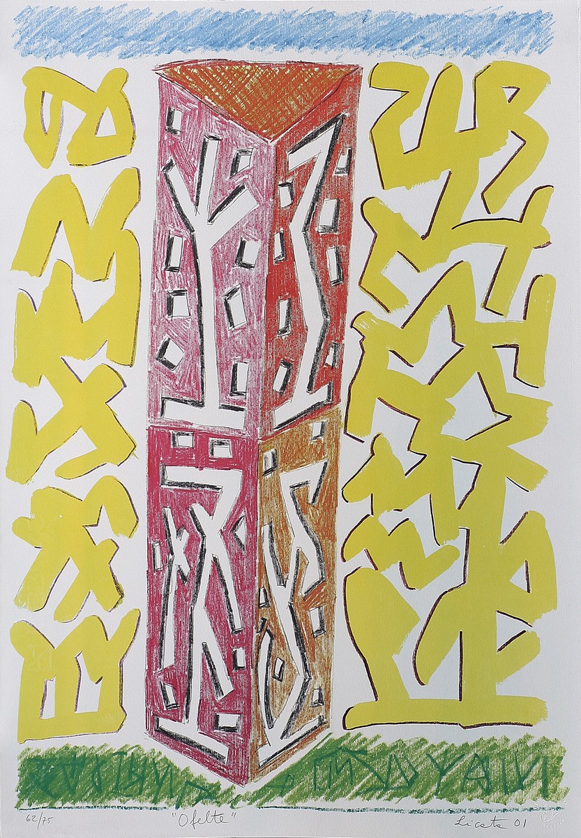 LICATA RICCARDO (n. 1929) Ofelte. 2001. Serigrafia. Cm 35,00 x 50,00. Tir. 62/75, titolo, firma e data in basso a matita. Timbro a secco Tintoretto, Venezia in basso a destra.
