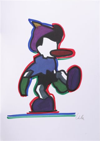 LODOLA MARCO (n. 1955) Pinocchio. Serigrafia ritoccata a mano. Cm 50,00 x 70,00. Firma in basso a matita. Misure lastra:45x31 cm. Autentica dell'artista su fotografia.