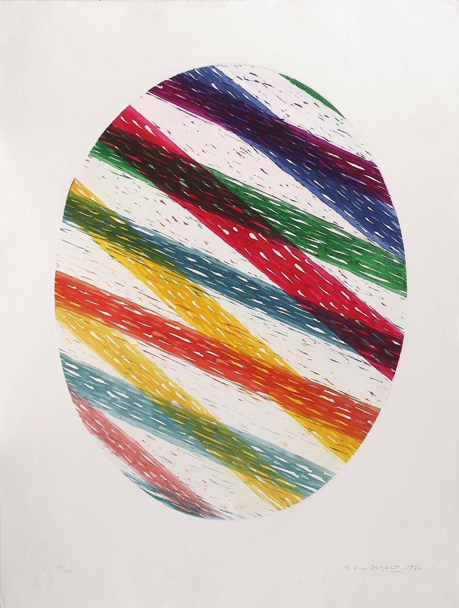 DORAZIO PIERO (1927 - 2005) Ovale n.1. 1984. Serigrafia. Cm 58,00 x 76,00. Tir. 43/120, firma e data in basso a matita. Misure lastra:57x43,5 Al retro descrizione dell'opera e certificato di garanzia a cura di Grafica d'arte Lombardi. Timbro a secco Grafica d'arte Lombardi.