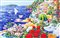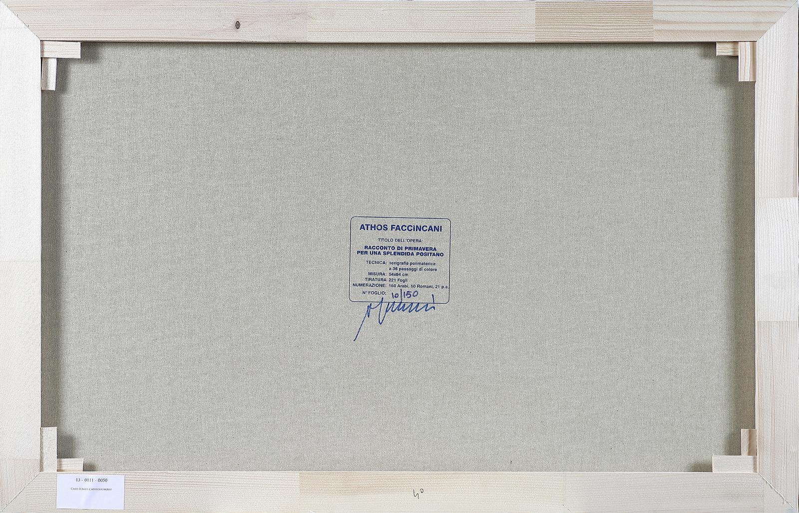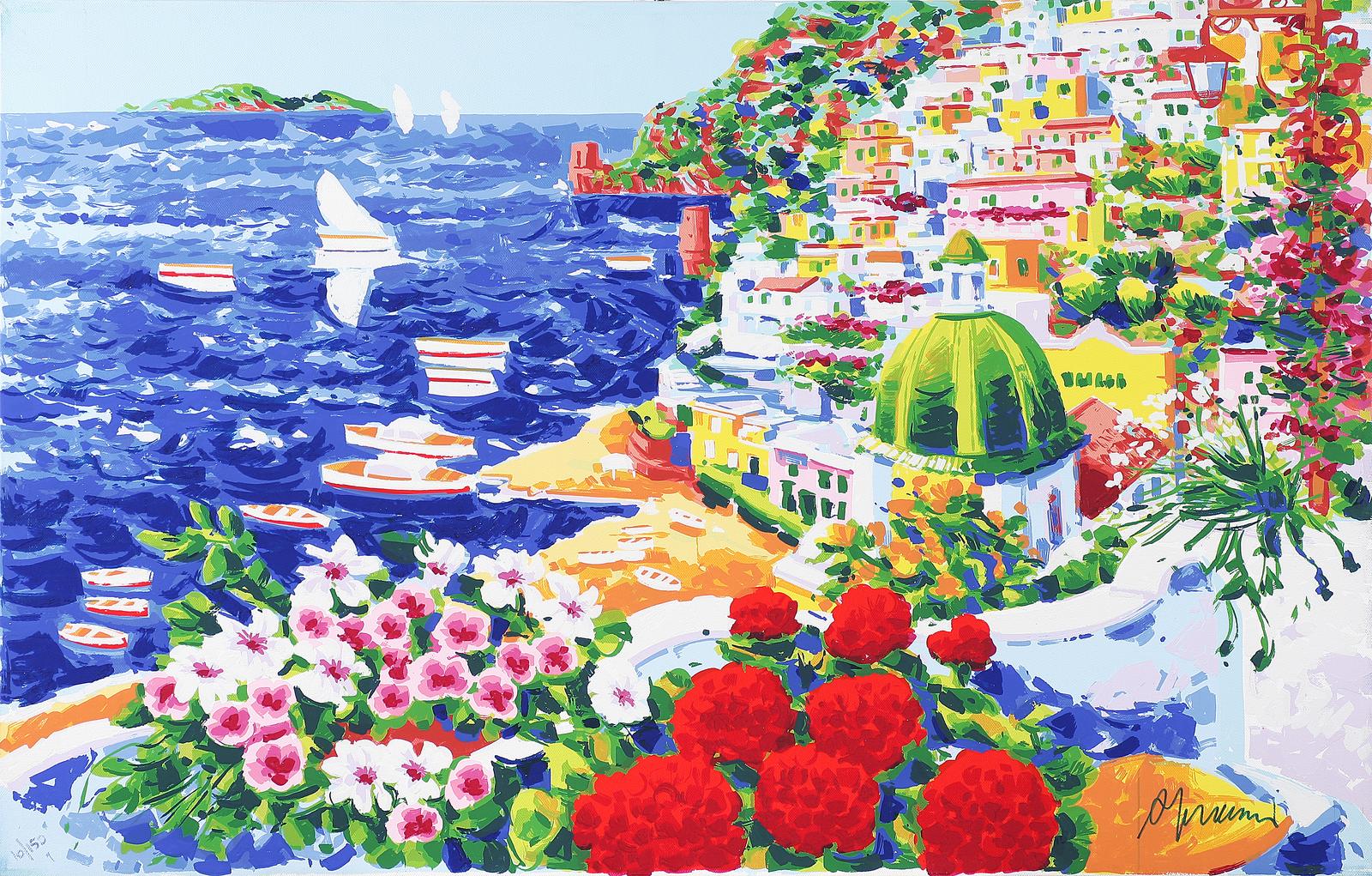 FACCINCANI ATHOS (n. 1951) Racconto di primavera per una splendida Positano. Serigrafia. Cm 84,00 x 58,00 x 2,00. Tir. 10/150 e firma in basso.