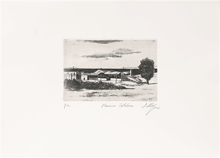 ANONIMO Senza titolo. Serigrafia. Cm 35,00 x 25,00. P.A., firma e titolo illeggibili in basso a matita. Misure lastra: 9,5x14,5 cm.