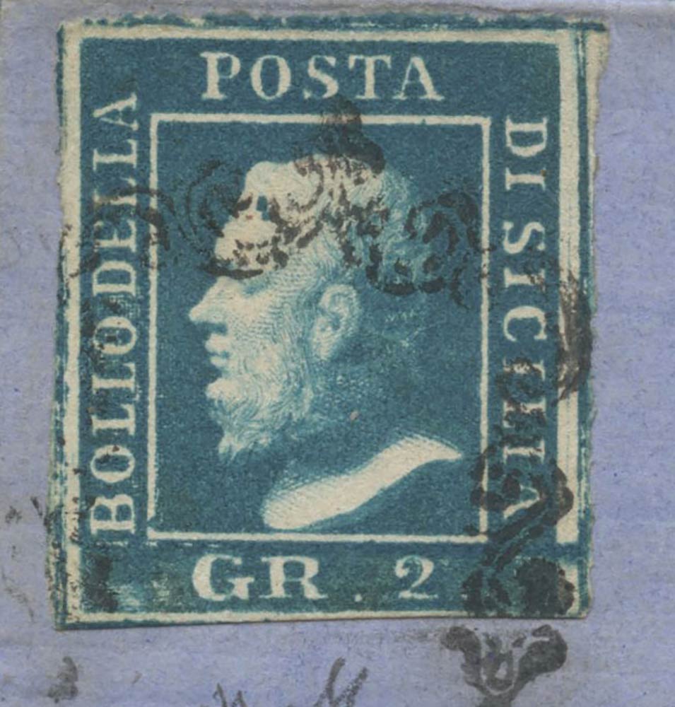 Lettera da Messina per Catania affrancata con un 2gr. N.8b Azzurro Verdastro...
