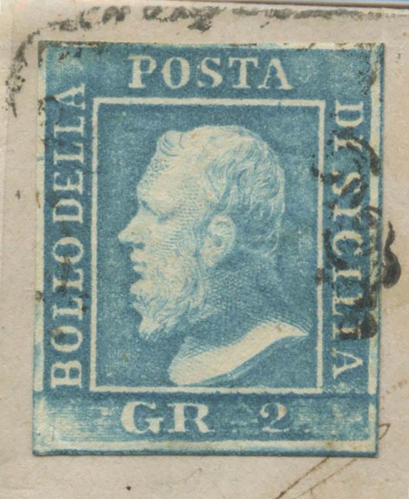 21.07.1859, lettera da Palermo per Girgenti affrancata con un 2gr. N.6 con ritocco 78 tratti nel ciuffo e puntini sulla fronte. (Lux) (Cat.1.750++)