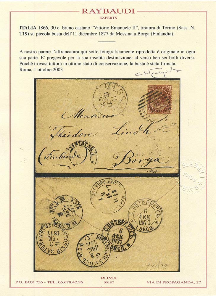 Lotto 487 | Lettera da Messina per Borga affrancata con 30c. Bruno Castano N.T19. (A)...