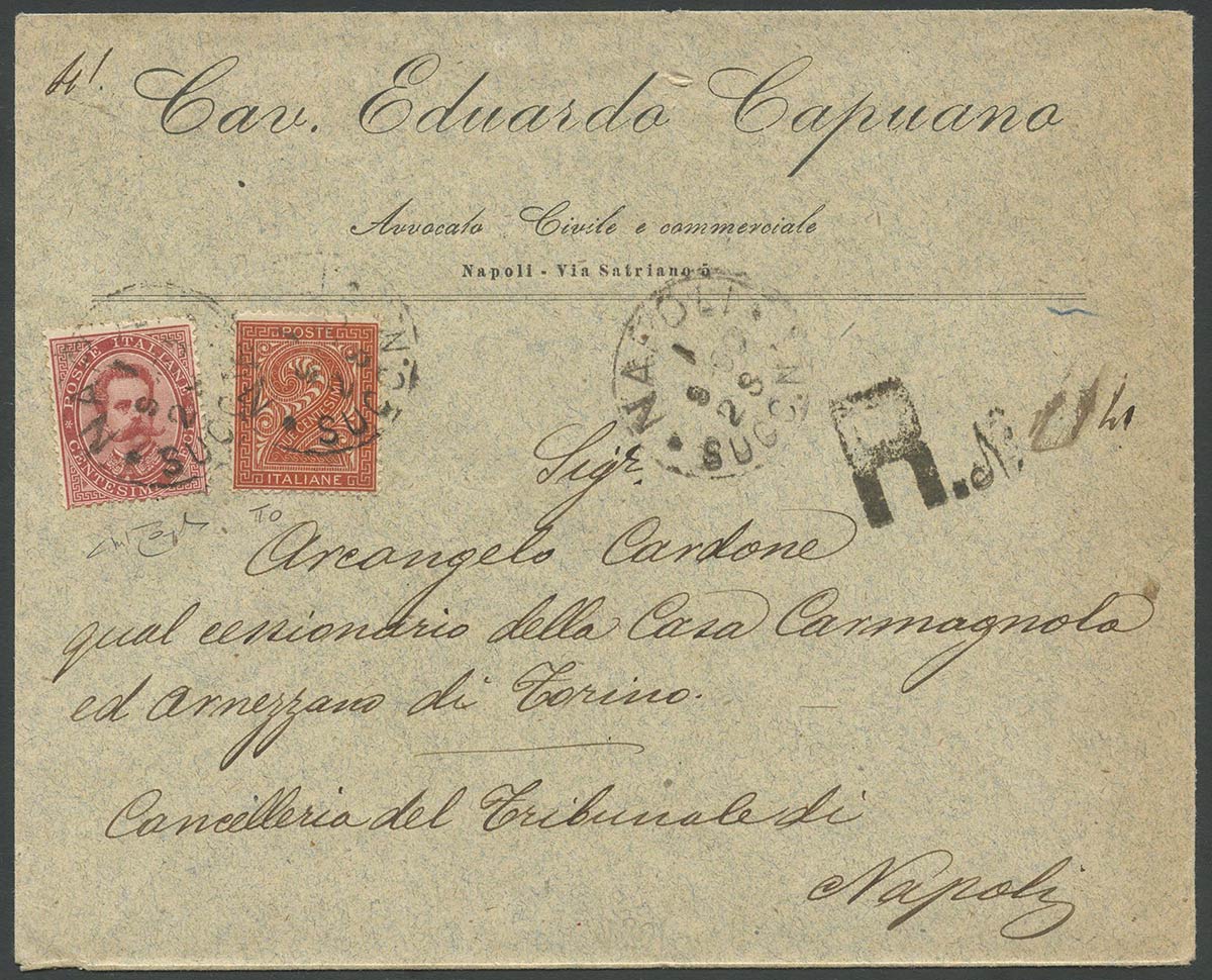 Lettera Raccomandata da Napoli per Città con affrancatura ''Due Re'' composta da 2c. N.T15 e 10c. N.38.. (A) (Raybaudi) (Cat.--)
