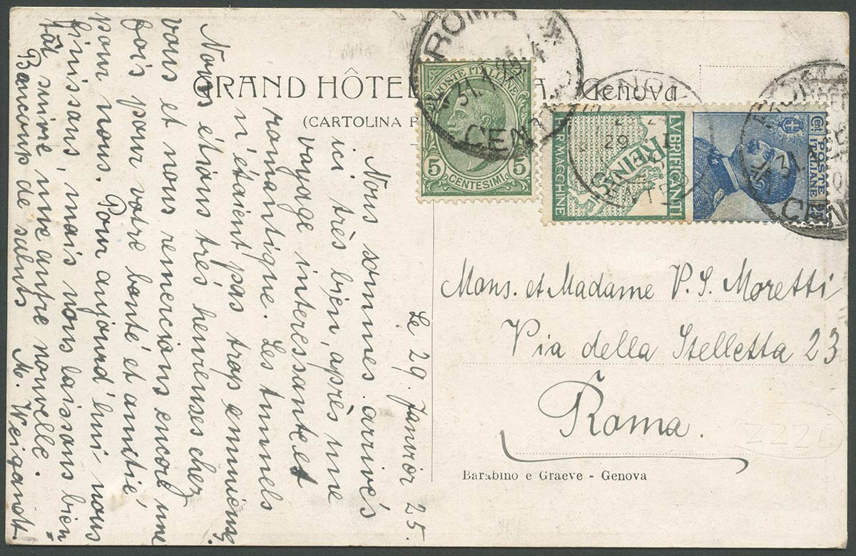 Cartolina 25c. ''Reinach'' N. 7 della serie dei Pubblicitari + 5c. Verde N.81.