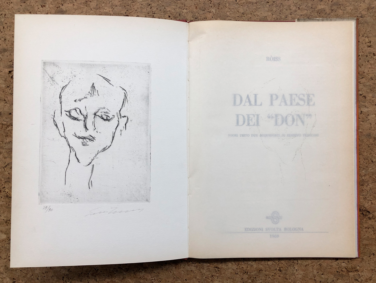 Edizioni d'arte con testo di Ròiss e 2 acqueforti fuori testo di Ernesto Treccani, ciascuna recante firma e numerazione (Esemplari 39/90) a matita al fronte