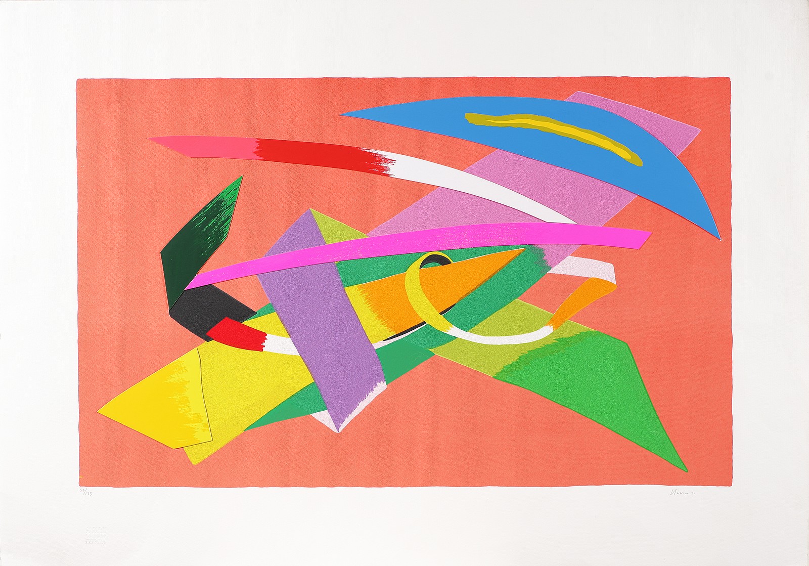 NUCARA RENZO (n. 1955) Senza titolo. 1990. Serigrafia. Cm 79,50 x 49,50. Tir.57/195, firma e data in basso a matita. Misure lastra: Timbro a secco Seriarte, Bergamo in basso a sinistra. Cornice presente