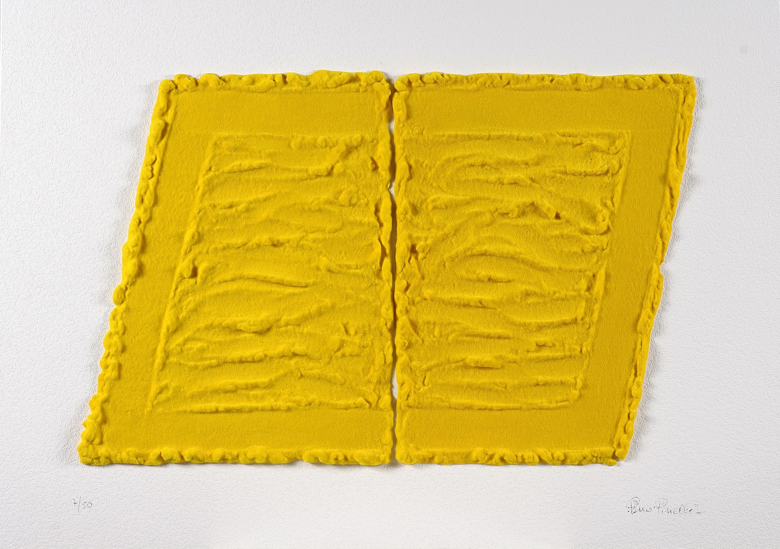 PINELLI PINO (n. 1938) Pittura gialla. 2006. Serigrafia materica. Cm 85,00 x 60,00. Tir. 7/50 e firma in basso a matita. Autentica a cura di Seri-Arte srl, Gorle(BG).