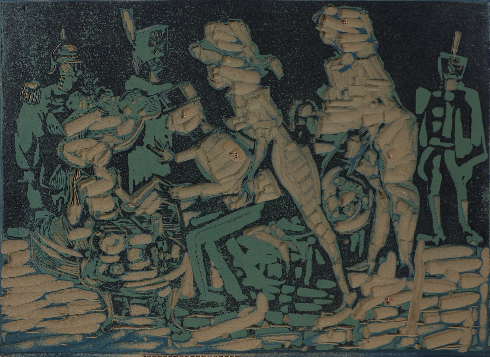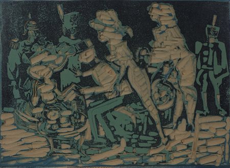 MACCARI MINO (1898 - 1989) Senza titolo. Matrice per stampa. Cm 55,00 x 40,00. Matrice per stampa linoleografica. Opera archiviata presso l'archivio Mino Maccari, Massa Carrara, come da documentazione fotografica allegata riportante il relativo numero d'inventario.