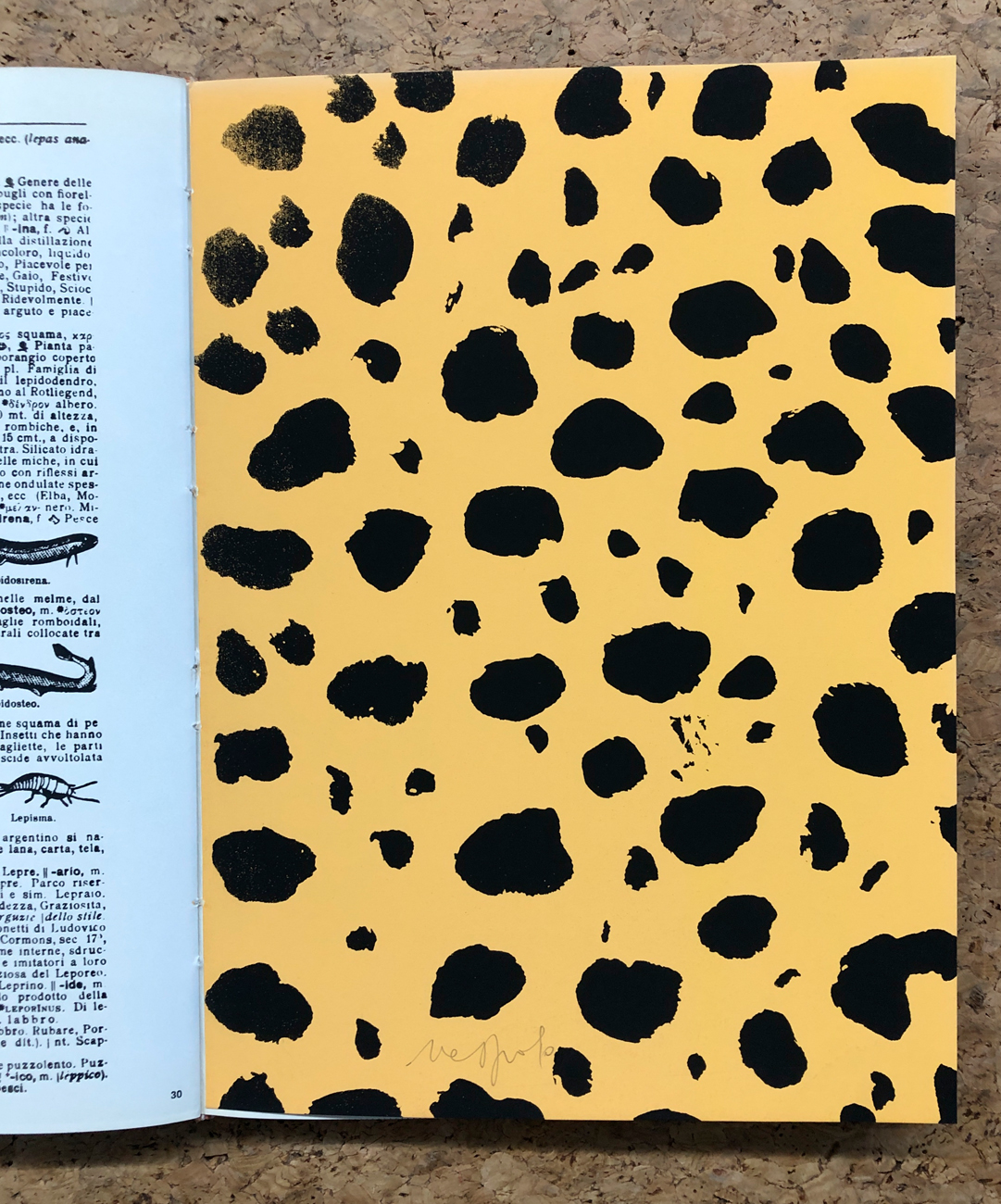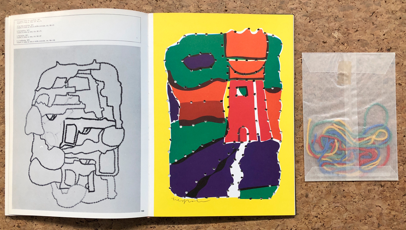Catalogo riccamente illustrato, a cura di Enrico Crispolti, contenente 3 serigrafie firmate a matita, di cui una a doppia pagina e una da ritagliare ed assemblare con dei fili colorati (anch'essi a corredo)